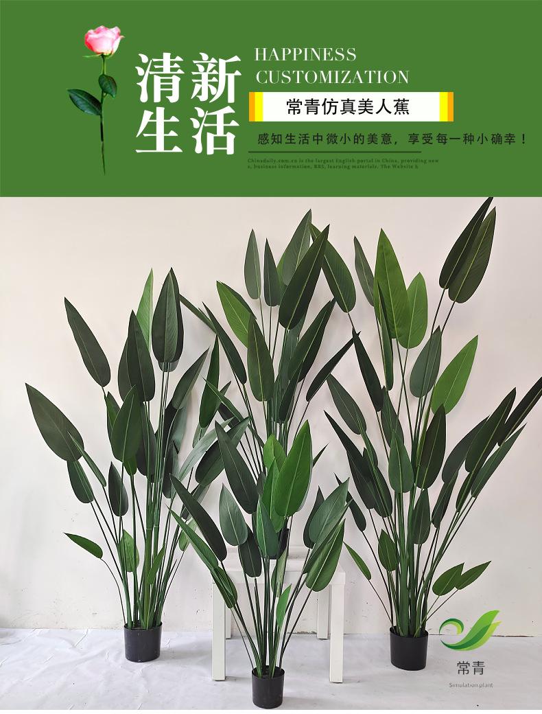 Decoración de plantas simuladas de hoja perenne, adornos en macetas de plantas verdes falsas nórdicas, lugar de árbol de plátano simulado