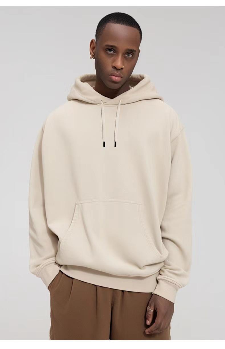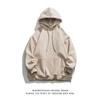 Suéter con capucha y borde cruzado de 420 g, suéter de felpa para hombre, novedad de 2024, suéter holgado de longitud media de color sólido, marca de moda para parejas.