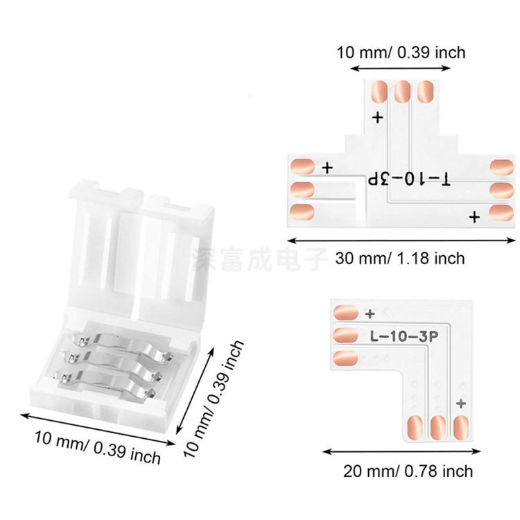 Luz Mágica LED con Conector Sin Soldadura 10Mm3P Placa de Esquina Tipo L t X Conector de Montaje 8Mm3P