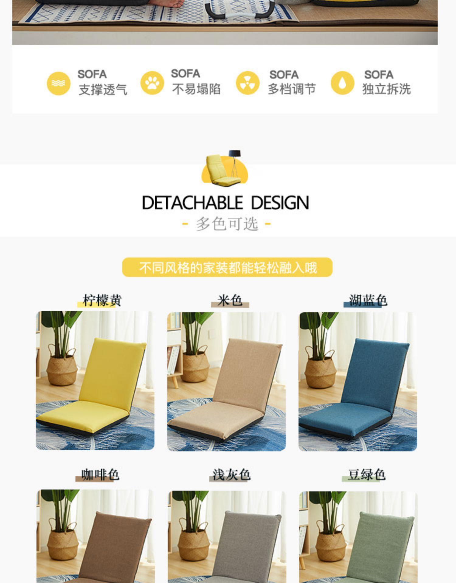 Silla de piso estilo japonés al por mayor silla económica con respaldo para cama reclinable individual plegable sofá perezoso tatami