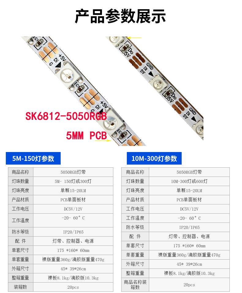 Tira de luz mágica de color 5050 de 5 V, 1 metro, 30 LED, IC integrado, WS2812B, SK6812