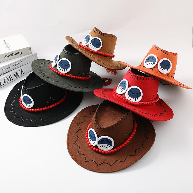 Compra Sombrero de Jazz Ace de One Piece para Hombre y Mujer diy Combinable Sombrero de Moda Sombrero de Vaquero Occidental Protección Solar Animación Parasol al por mayor en Joom.pro