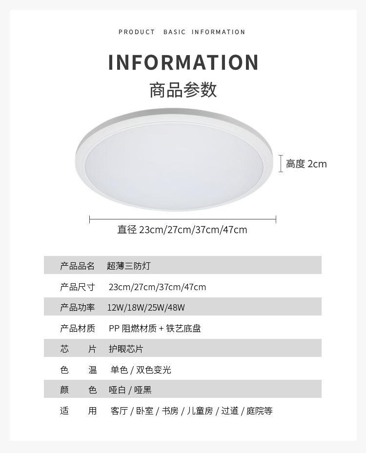 Luz LED Tri-Prueba Moderna Simple Ultrafina a Prueba de Polvo y Mosquitos Redonda Pasillo Balcón Dormitorio Impermeable Habitación Sala de Estar Luz a Prueba de Humedad