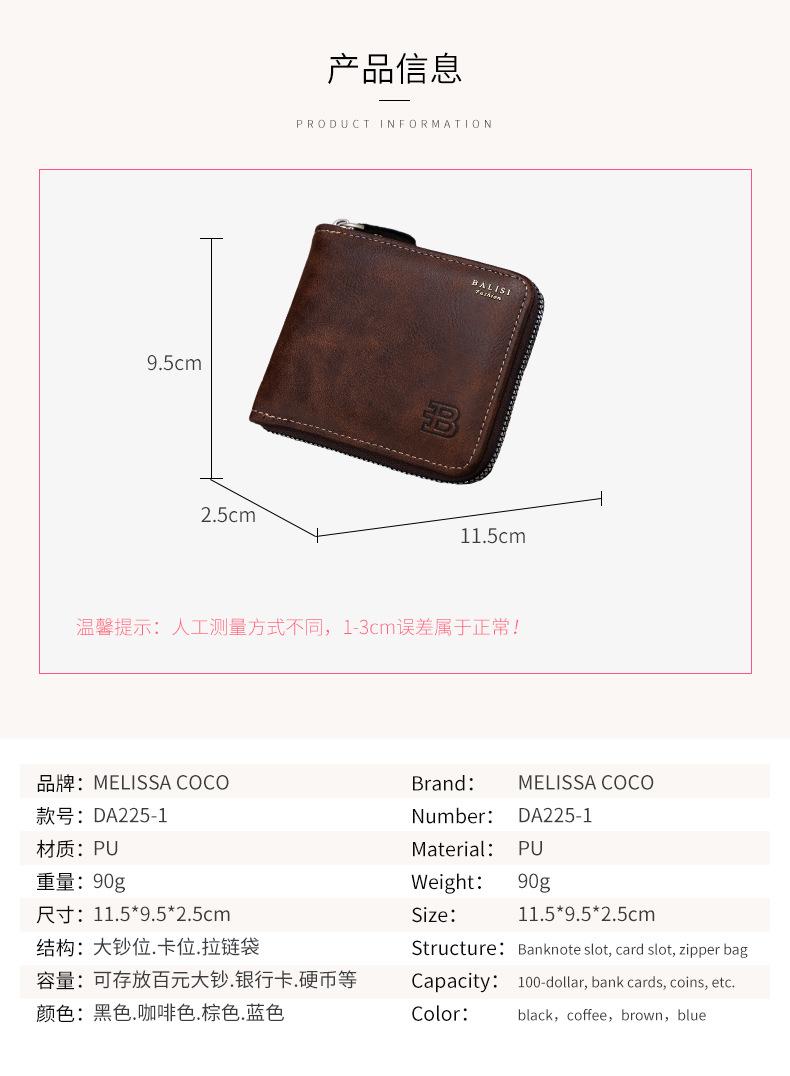 Billetera Retro para Hombre de Comercio Exterior Multifuncional con Cremallera Billetera Corta para Hombre con Múltiples Ranuras para Tarjetas y Gran Capacidad para Hombres