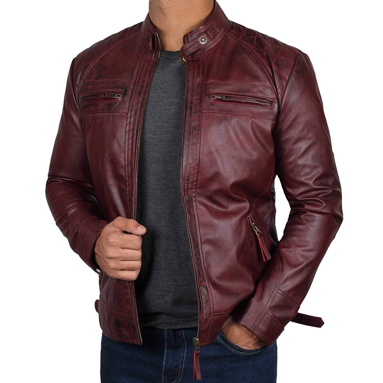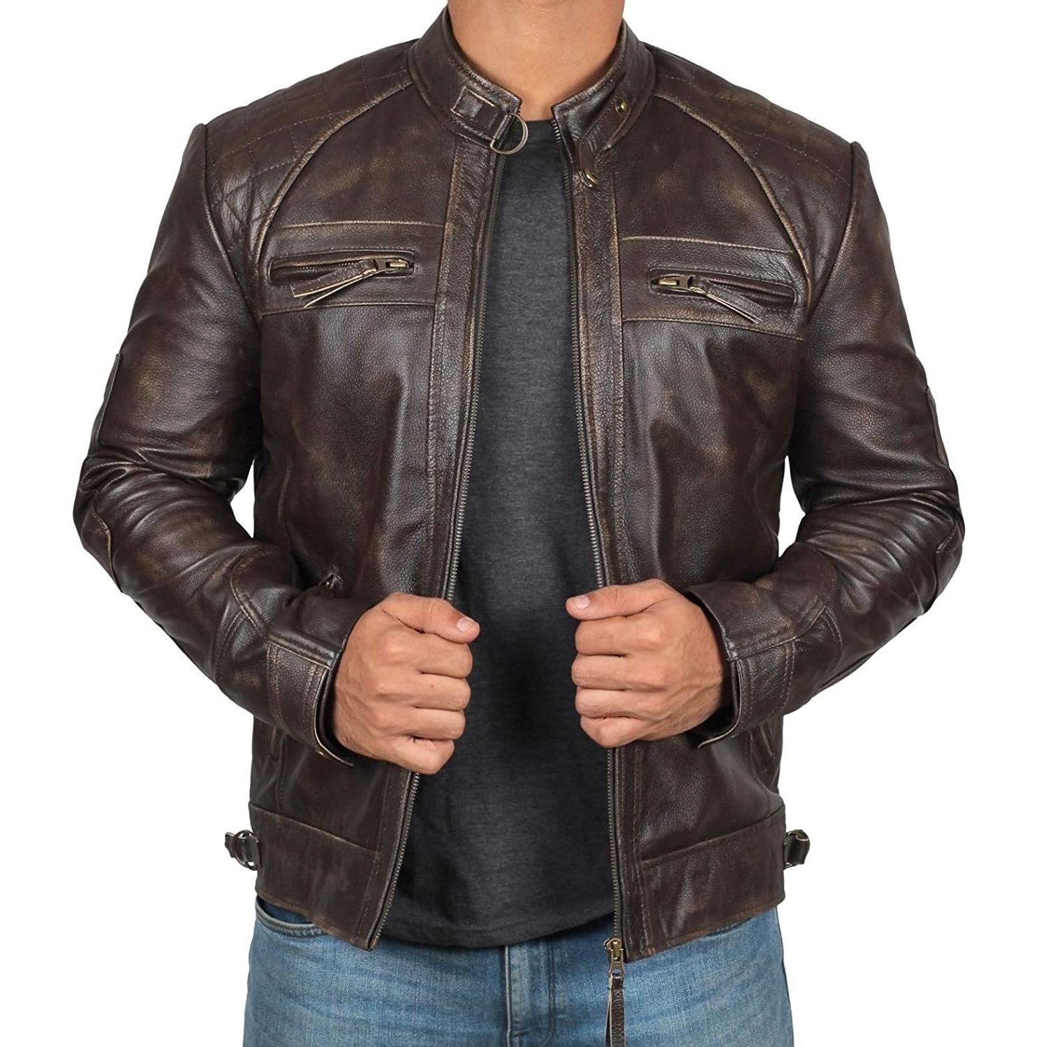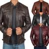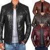 Chaqueta de cuero desgastado para hombre de Europa y América, comercio exterior 2023, chaqueta de cuero de motocicleta punk con cuello alto para jóvenes.