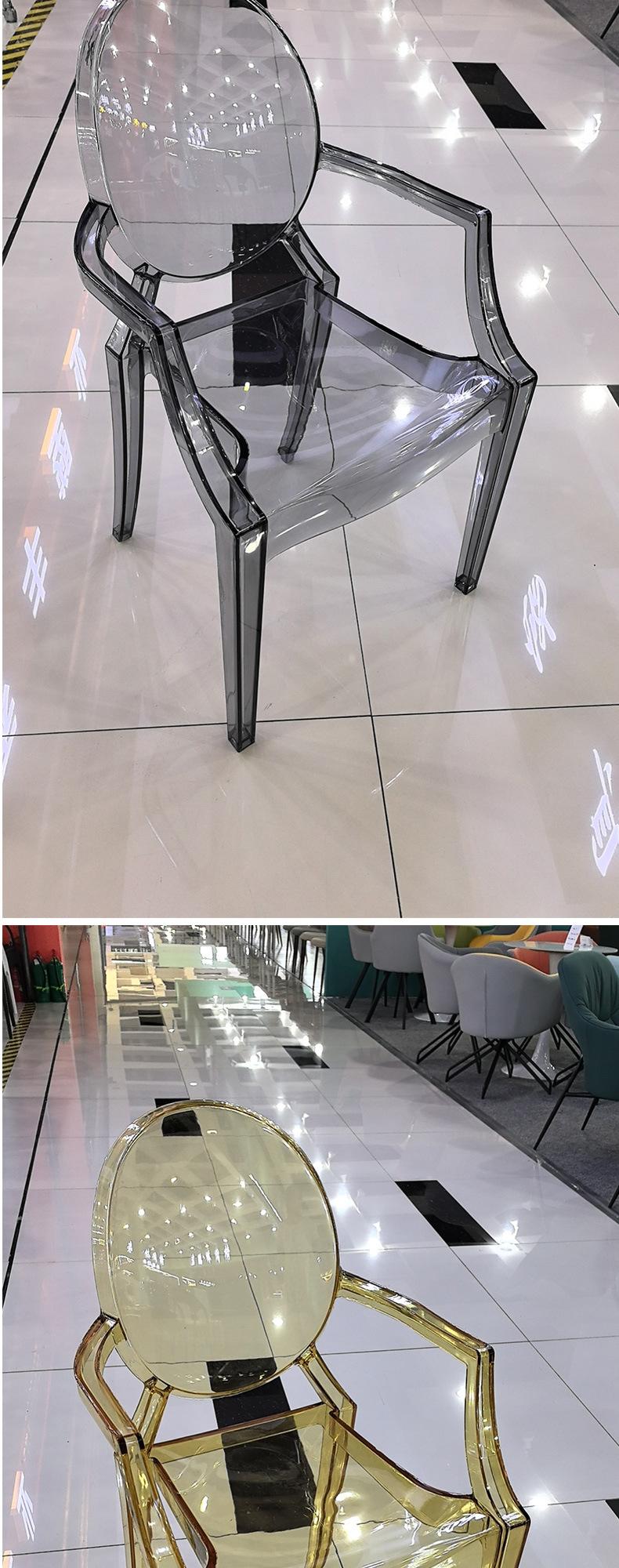 Silla de comedor nórdica, taburete de plástico y cristal para el hogar, silla acrílica transparente, silla de café para hotel comercial, silla fantasma del diablo