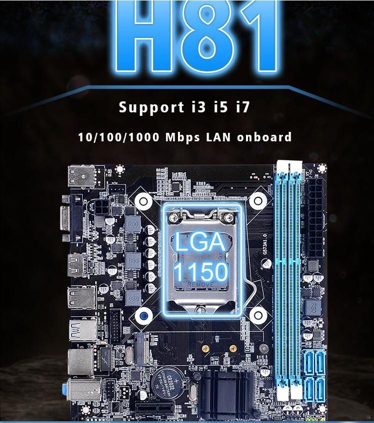 Nueva placa madre de computadora H81 pin 1150 soporta cuarta generación I3 I5 I7 placa madre de computadora de escritorio