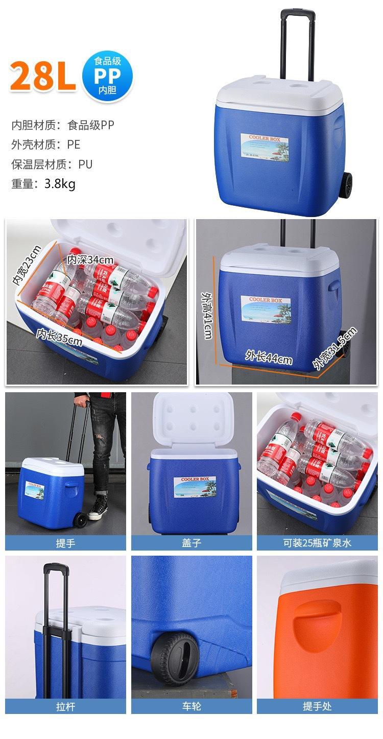 28L38L55LPU refrigerador con ruedas para exteriores, congelador con ruedas, para llevar, hielera de plástico para exteriores, aislamiento, caja para mantener fresco