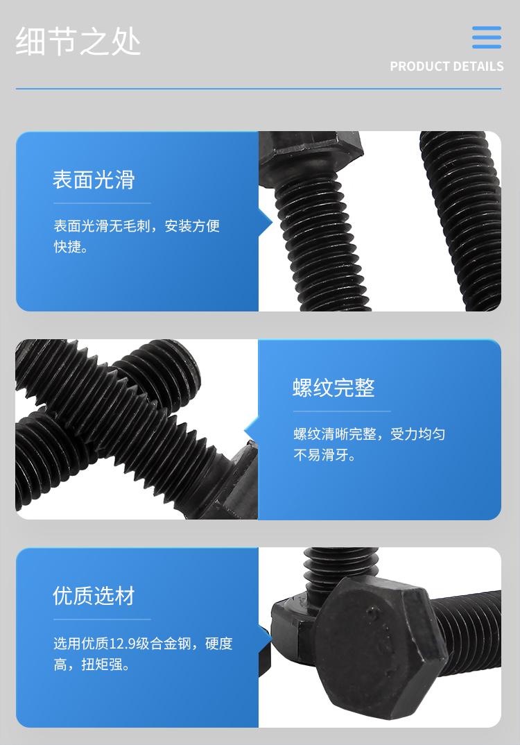 Pernos hexagonales externos grado 12.9 Tornillos de alta resistencia Negros Tornillos extendidos M5M6M8M10M12-M20