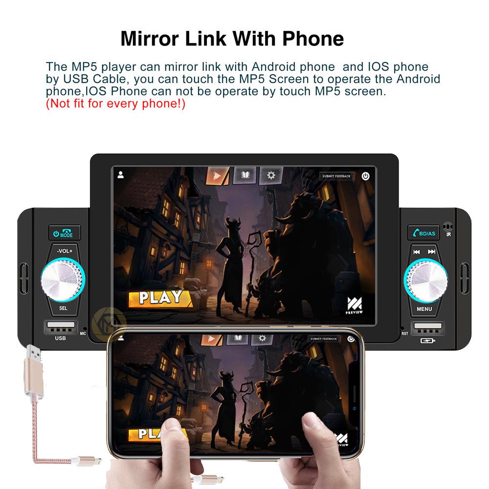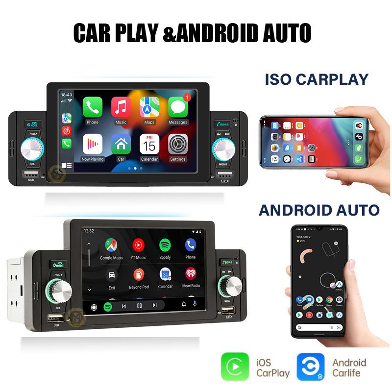 Reproductor MP5 de un solo eje con Bluetooth para coche Apple CarPlay de pantalla grande de 5 pulgadas, interconexión de teléfono móvil Android, host de marcha atrás