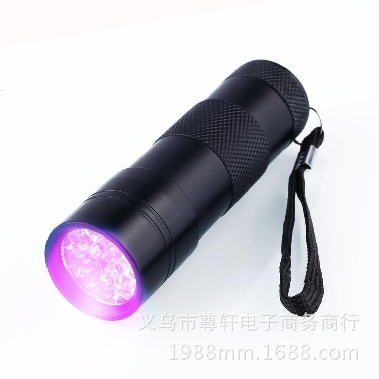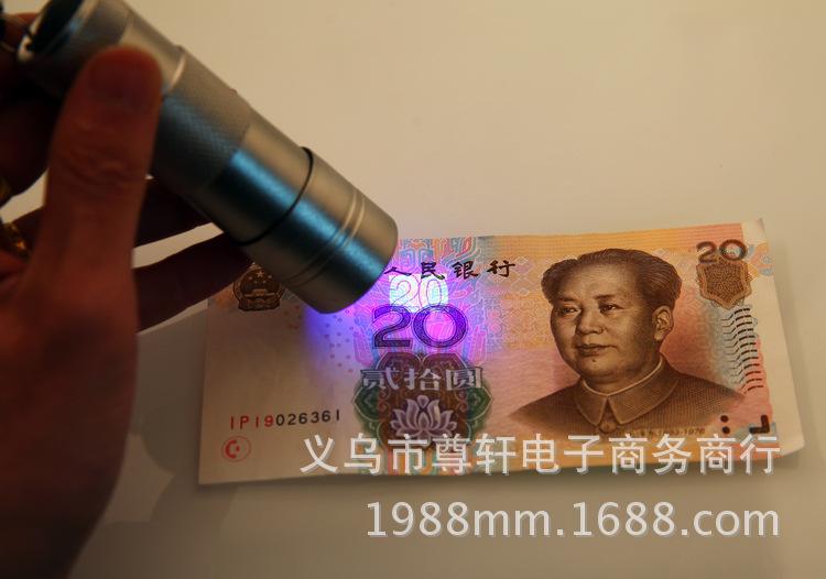1. Presione el interruptor en la parte posterior de la linterna para encender la luz violeta y verificar la autenticidad.