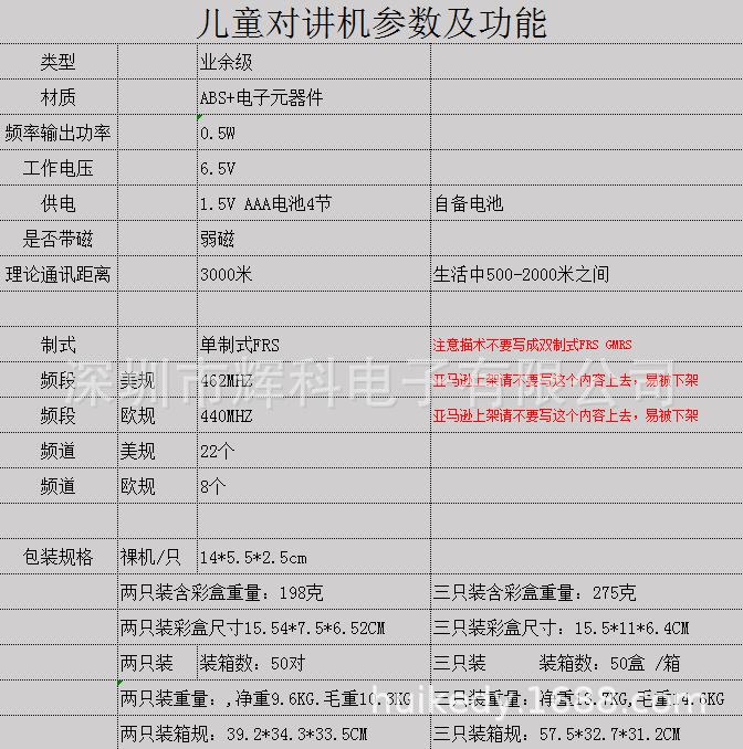 Suministro Transfronterizo Popular Amazon Juguete Walkie-Talkie para Niños Walkie-Talkie Portátil Walkie-Talkie Talkie Llamada