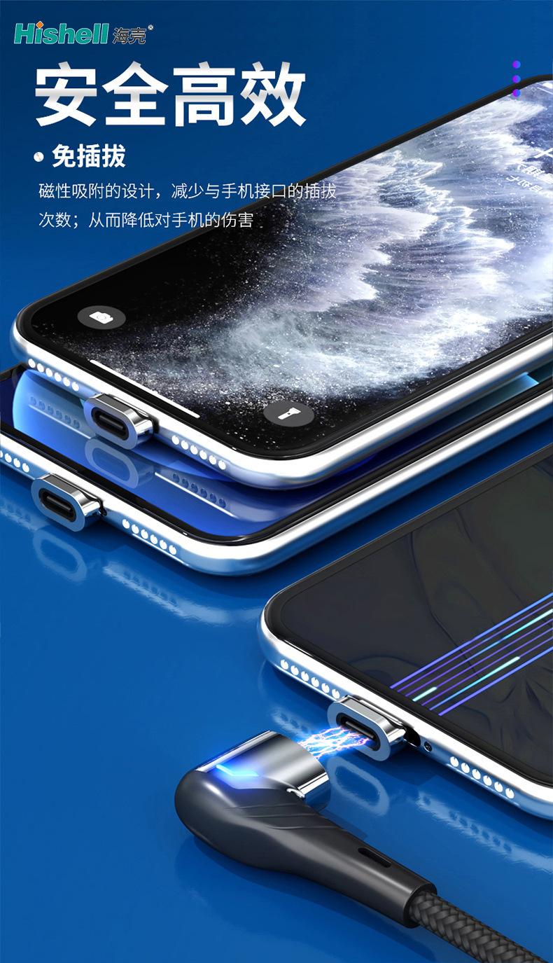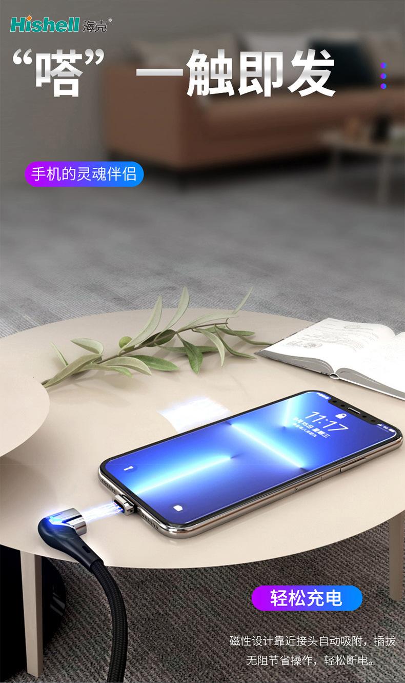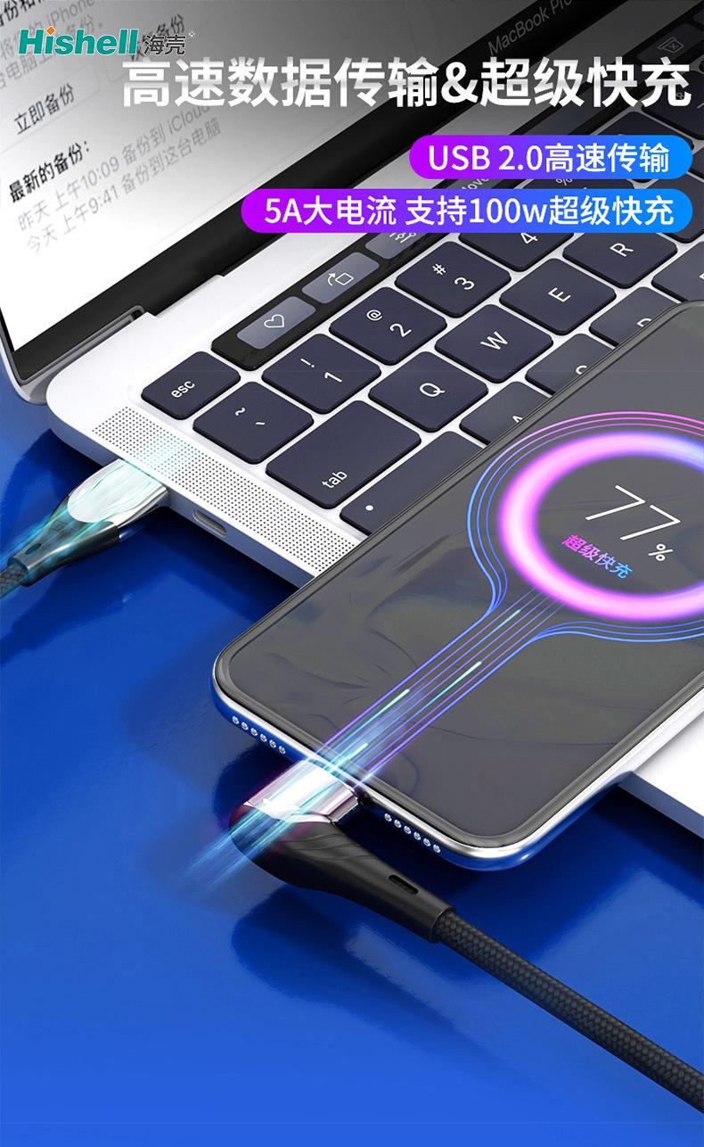 Cable de datos USB portátil de 100 W con codo, cable de carga magnético plano, carga súper rápida de 5 A para Android y Apple.