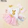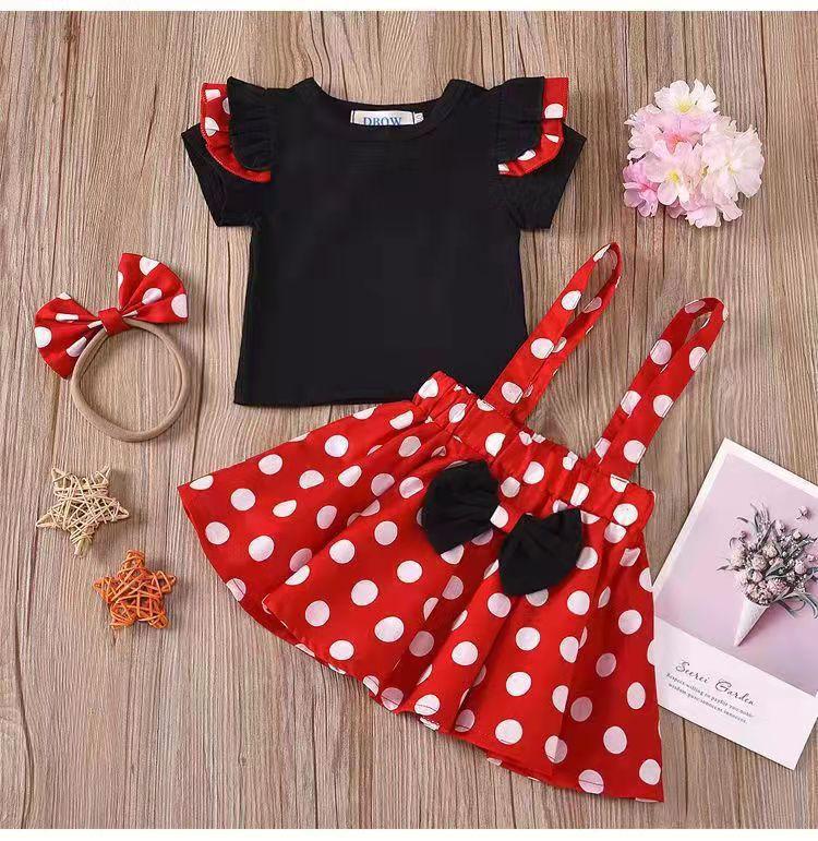 Vestido de Princesa para Niña Transfronterizo Lindo Vestido de Malla con Lunares Vestido de Navidad para Niña Falda Estilizada Traje de Tres Piezas