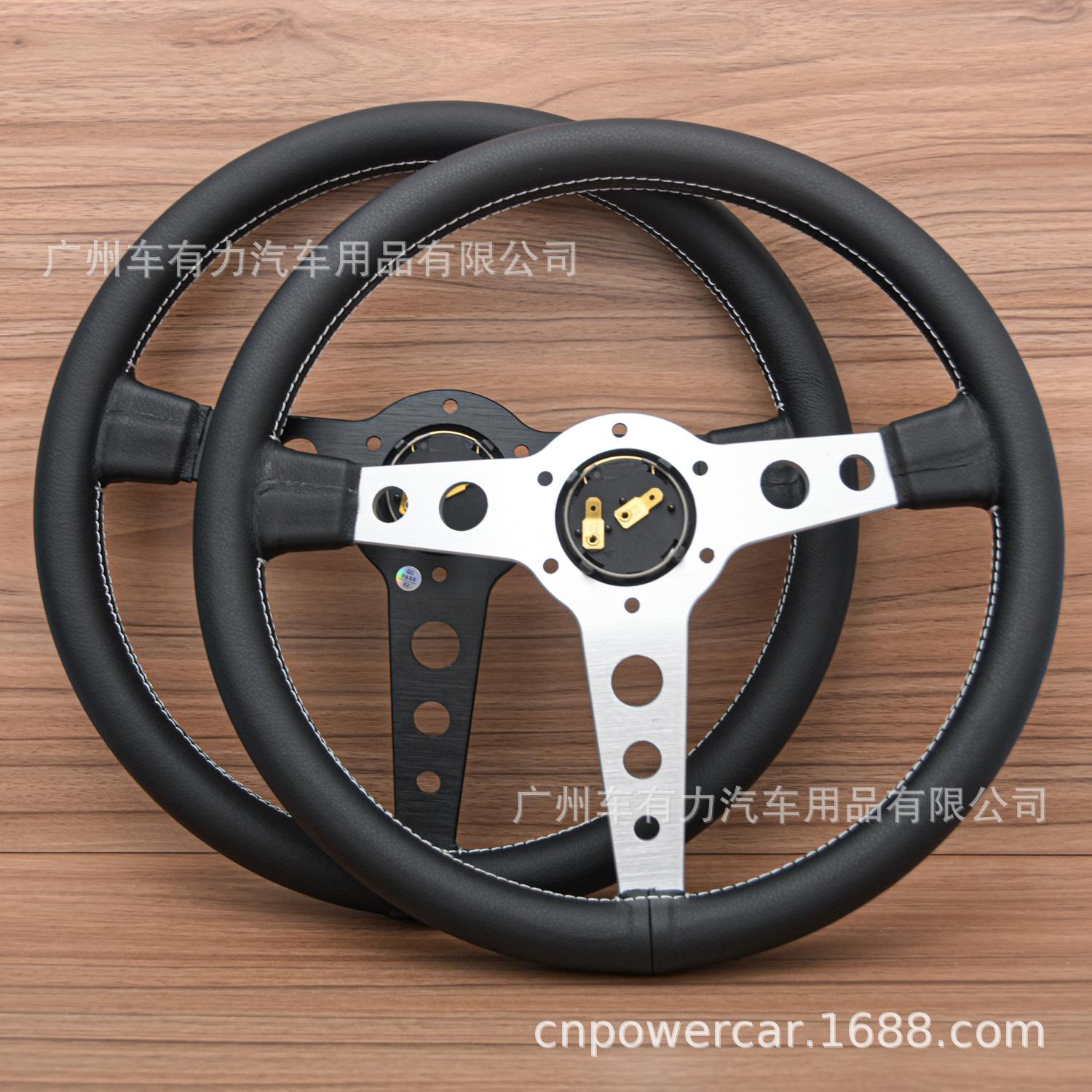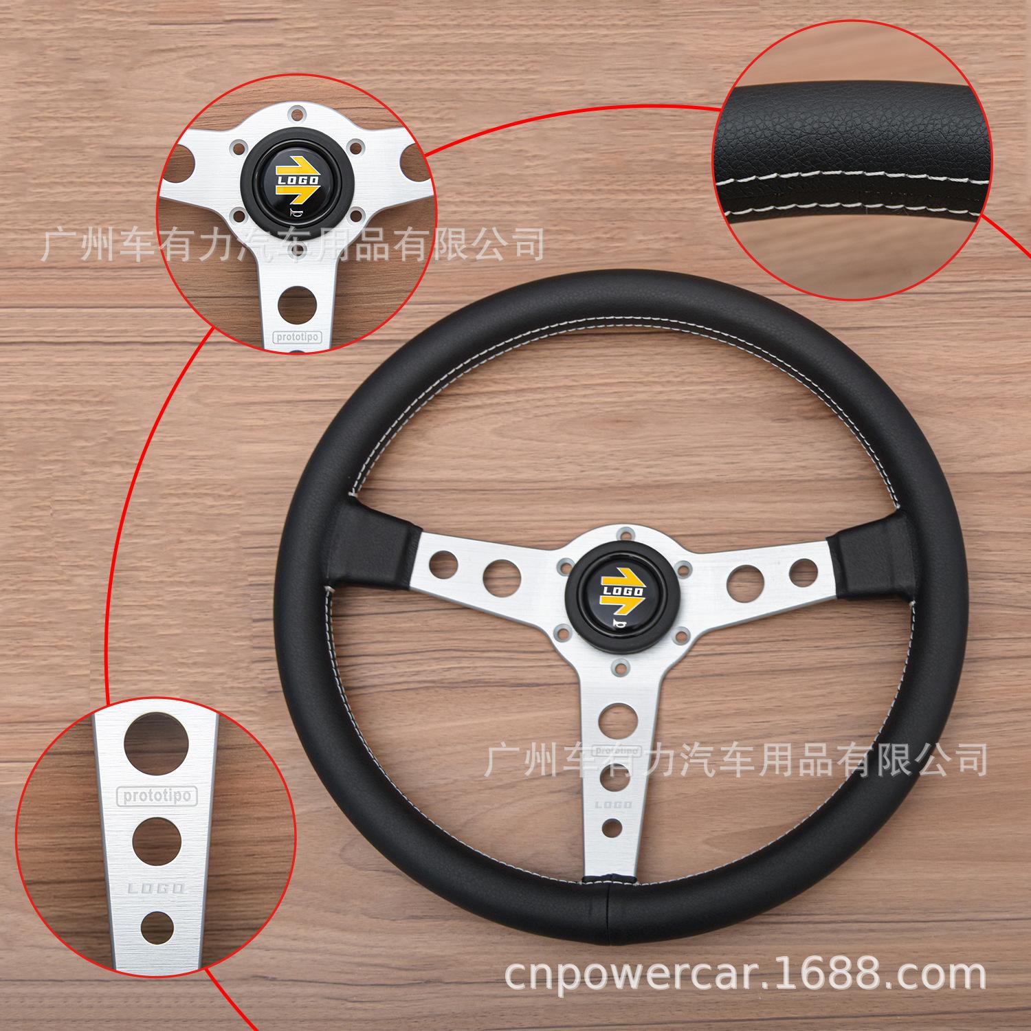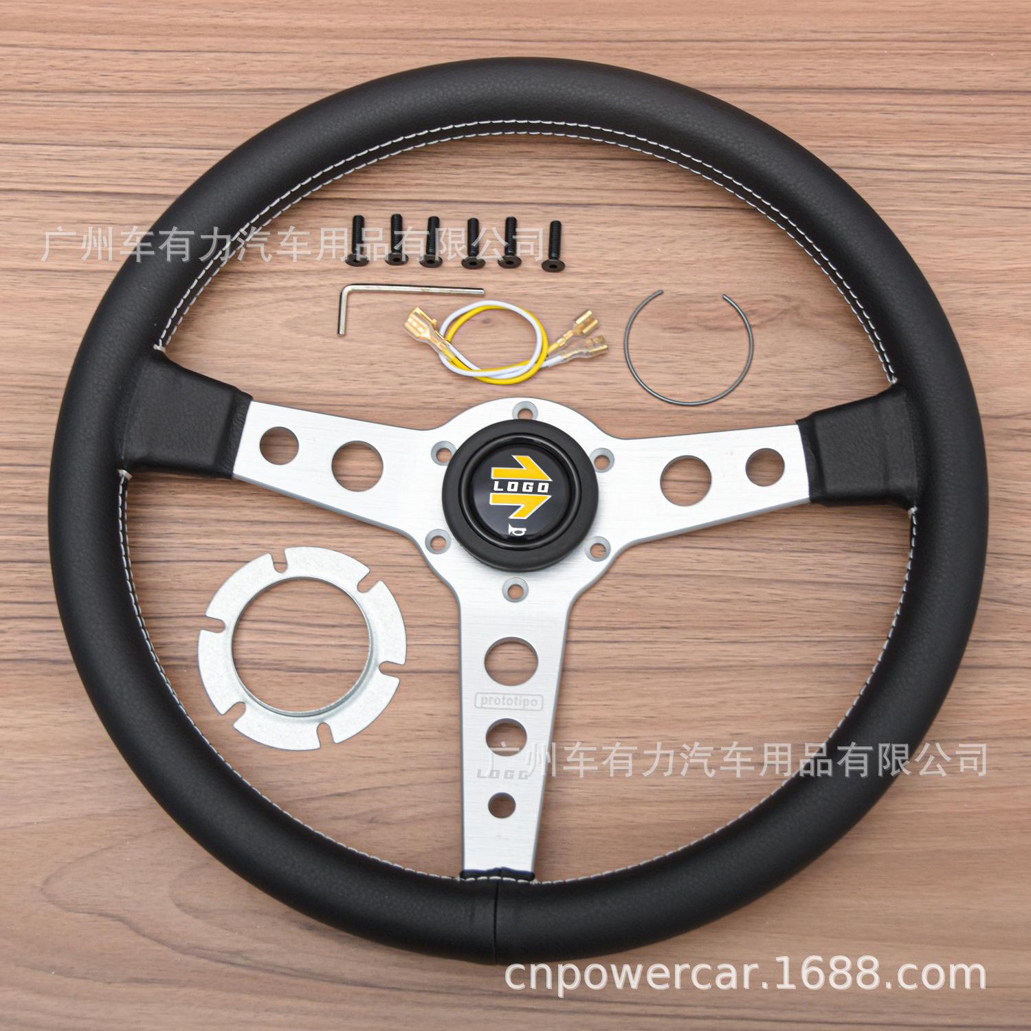 Compra Modificación de coche directa de fábrica volante de cuero de 14 pulgadas JDM línea blanca personalidad volante Prototipo al por mayor en Joom.pro