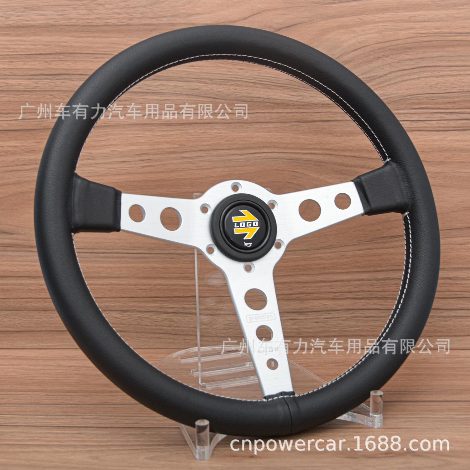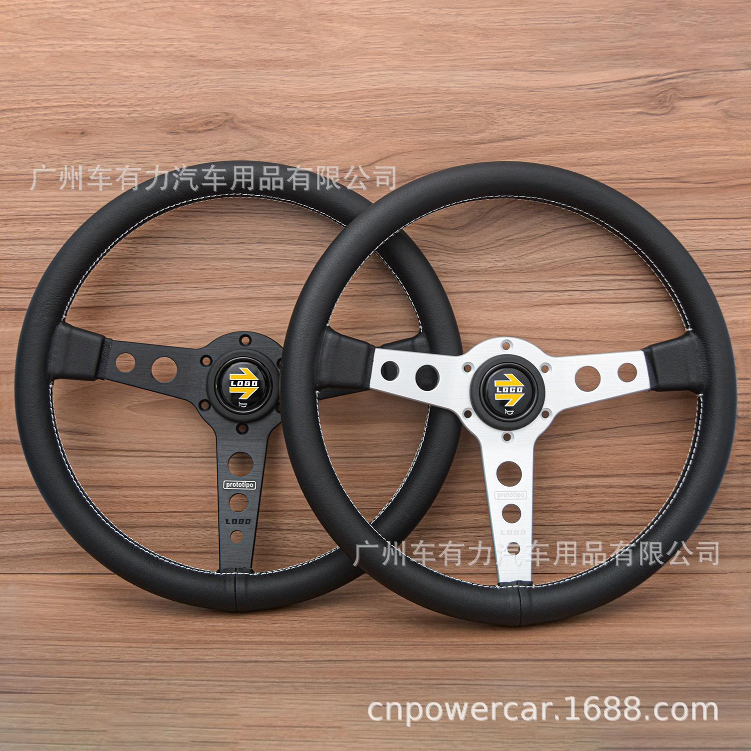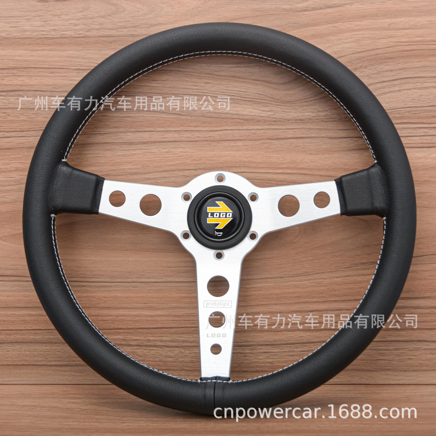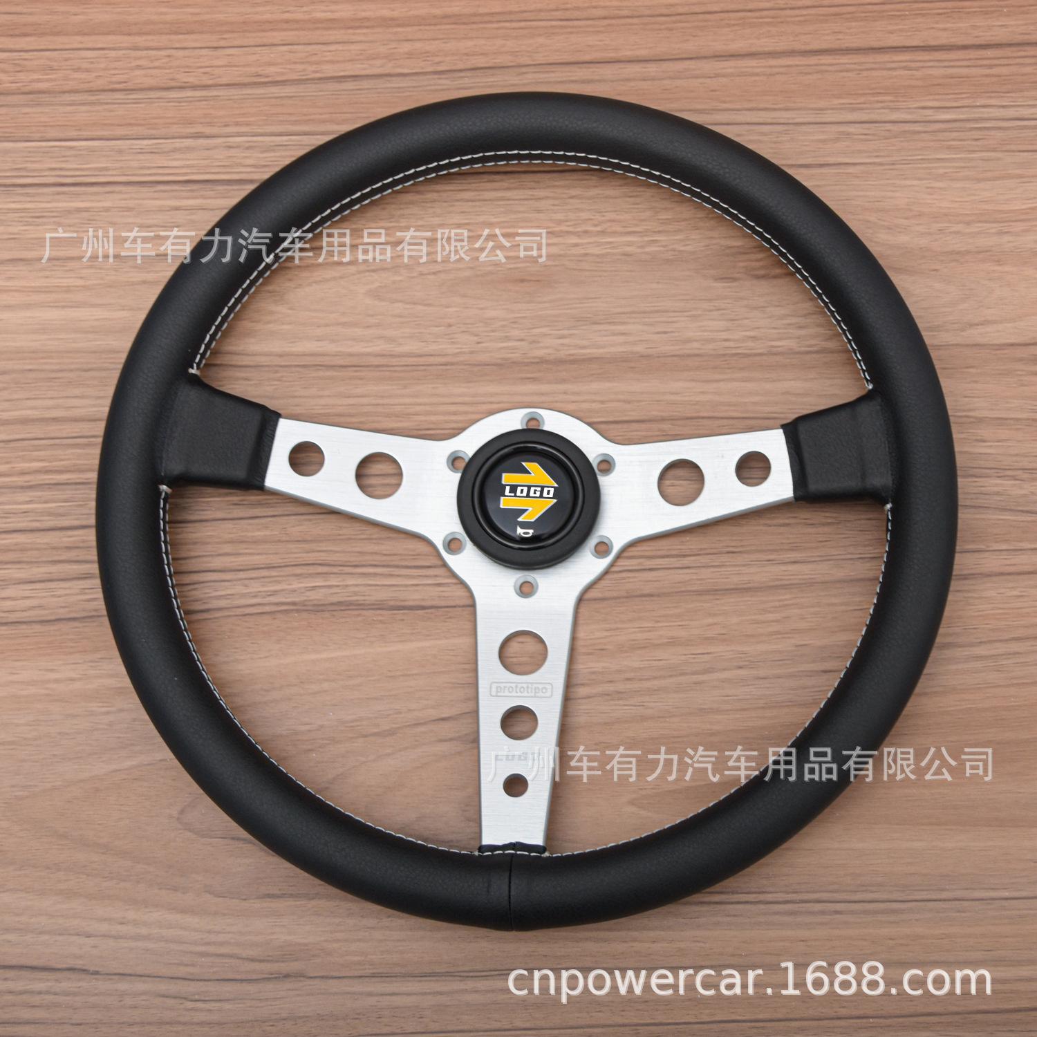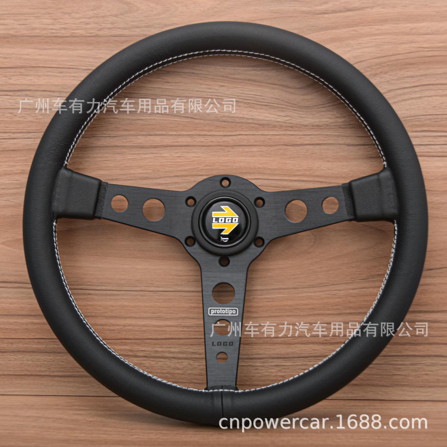 Modificación de coche directa de fábrica volante de cuero de 14 pulgadas JDM línea blanca personalidad volante Prototipo