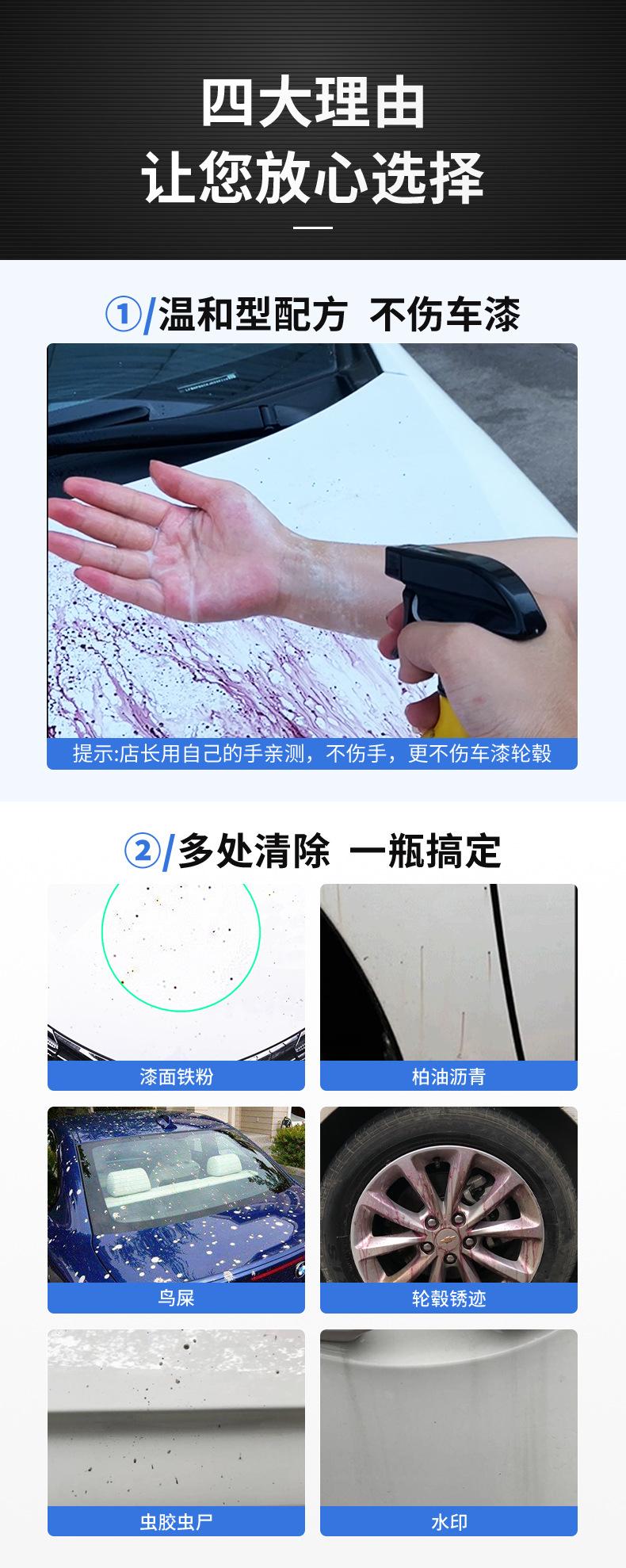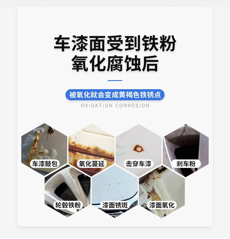Removedor de polvo de hierro para pintura de coche aleación de aluminio anillo de acero descontaminación superficie de coche blanco pintura voladora óxido renovación agente limpiador