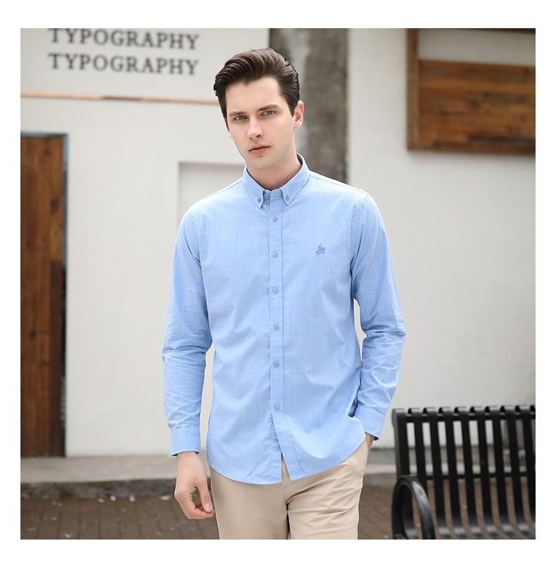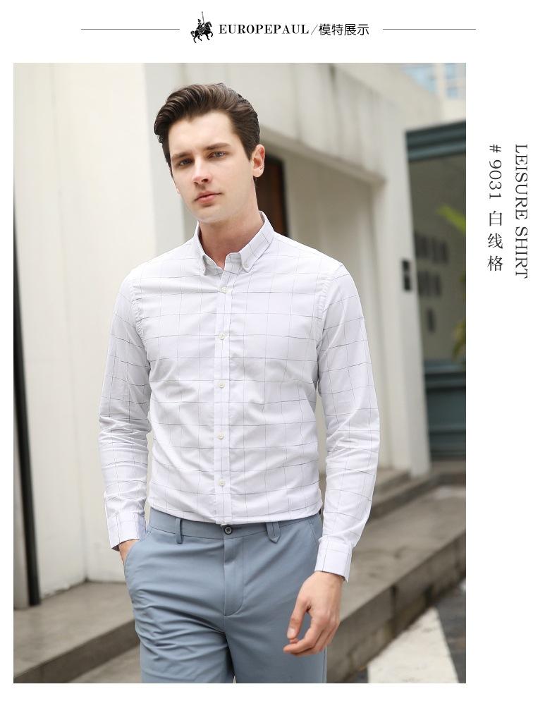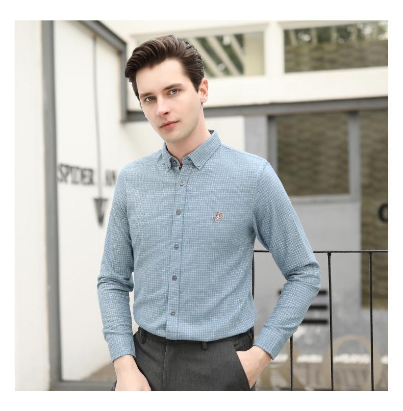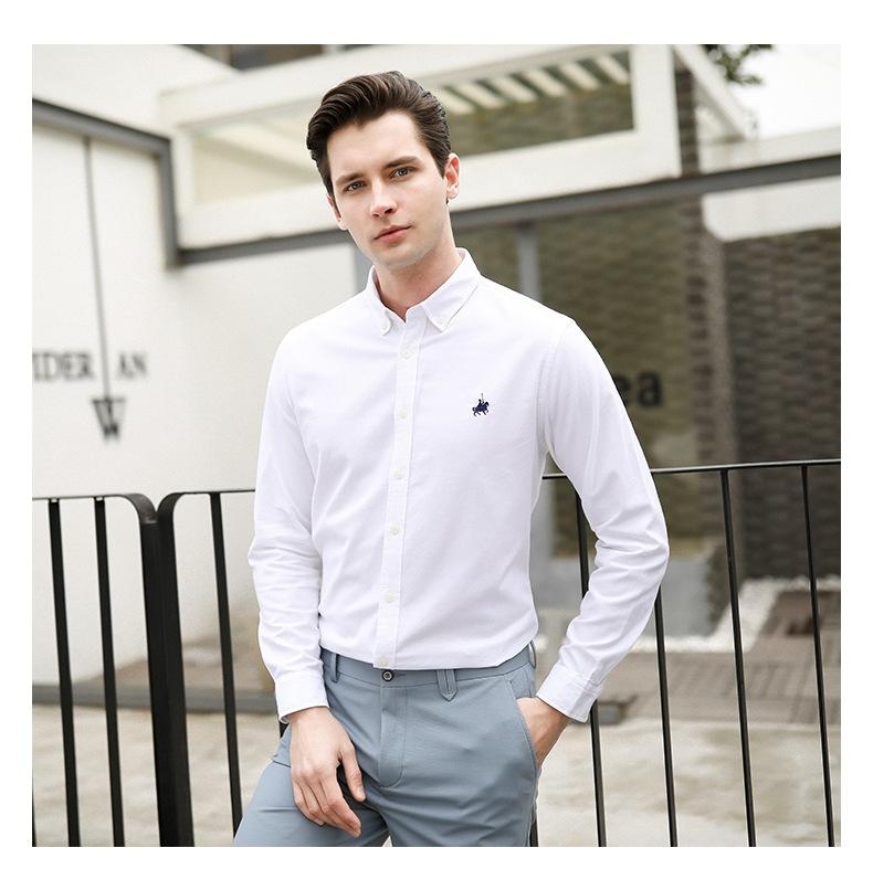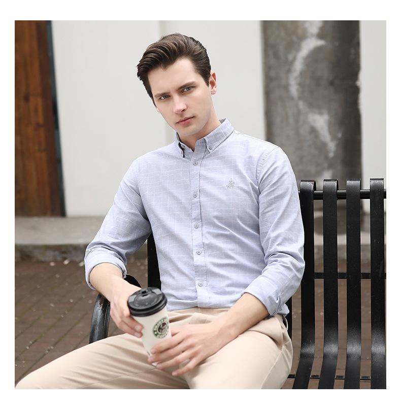 Camisa de Cuadros de Algodón para Negocios para Hombre de Manga Larga Blanca Primavera y Otoño Estilo Coreano Slim Casual Algodón para Hombre