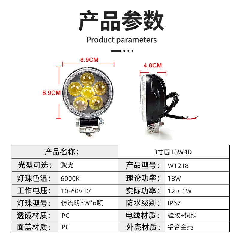 Venta al por mayor, nueva luz de trabajo redonda LED para vehículo todoterreno, lente 18W4D, iluminación, modificación de coche, foco de luz de parachoques delantero