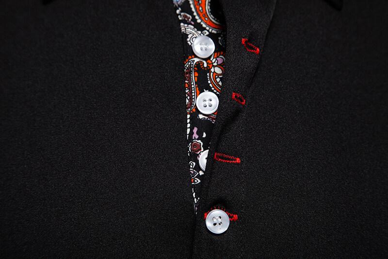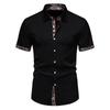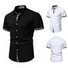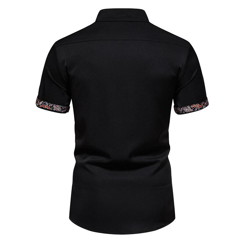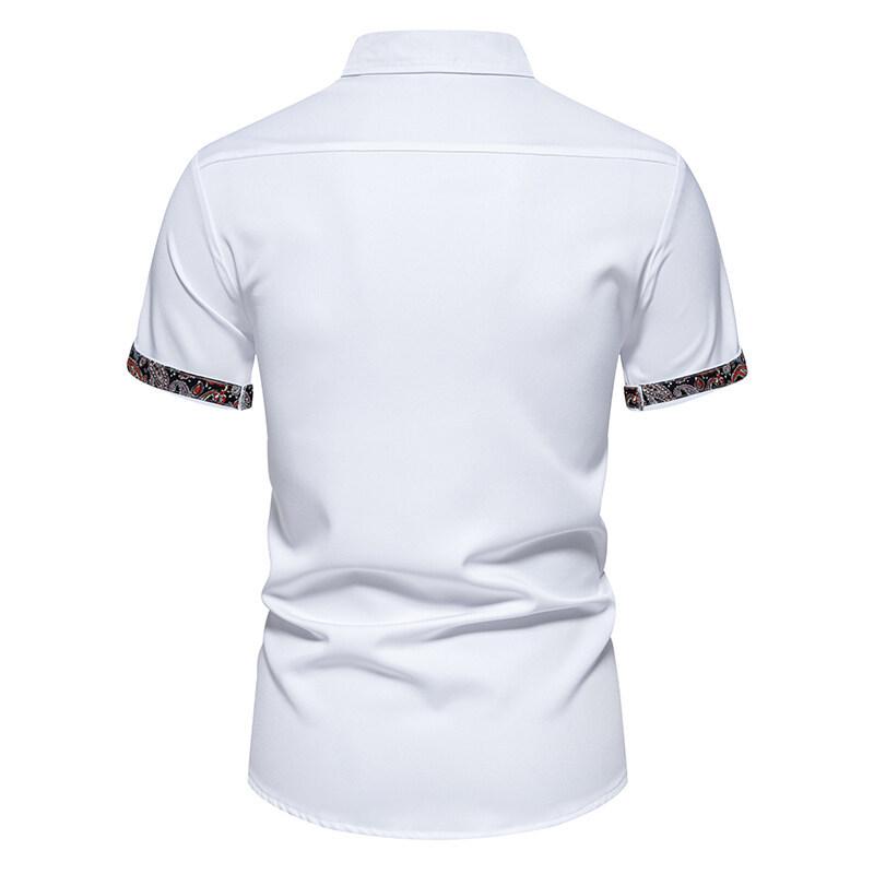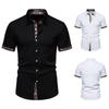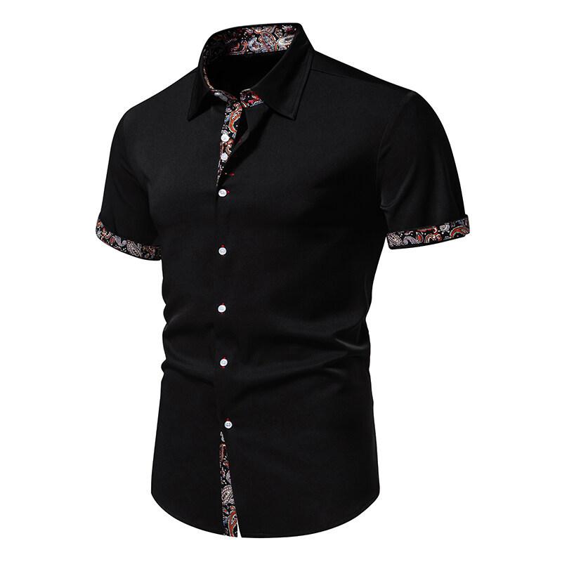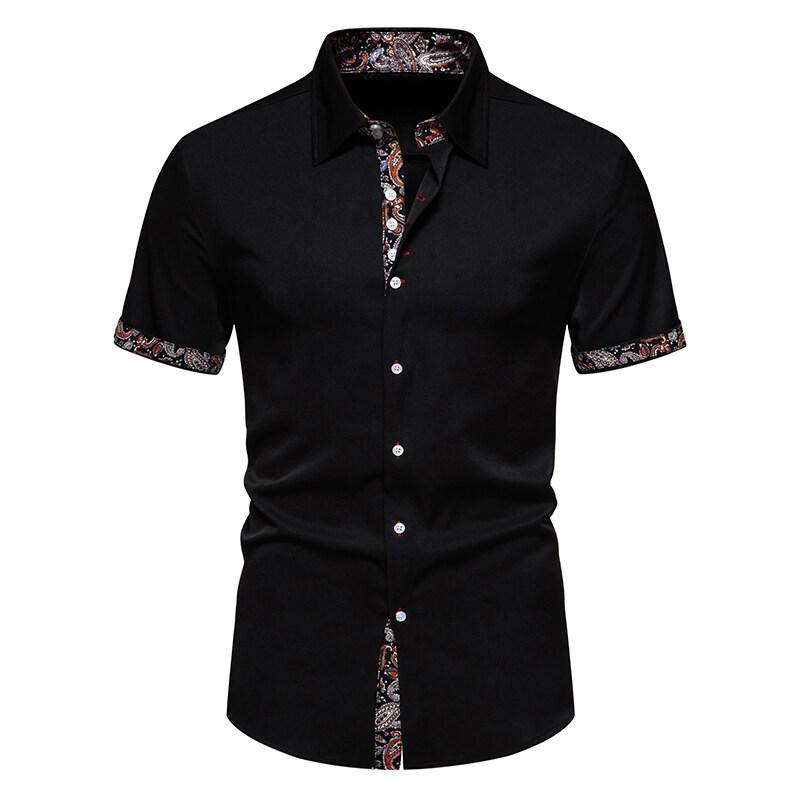 Verano 2024 Amazon Camisa Casual de Moda para Hombre de Manga Corta con Botones y Color de Contraste Interno, Cuello Estampado, Corte Ajustado