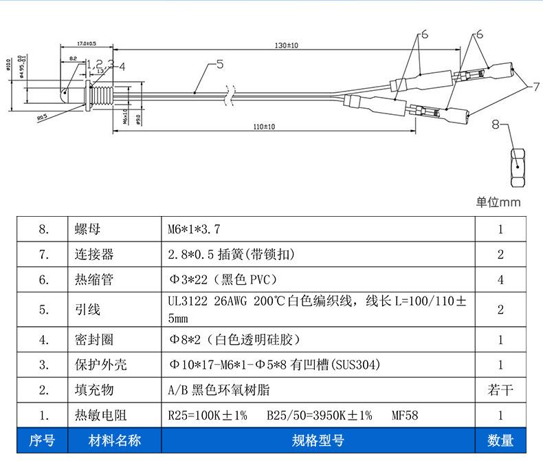 Sonda de temperatura de acero inoxidable, termistor de 100 K, para electrodomésticos, hervidor de agua caliente, calentador de leche, sensor de temperatura NTC