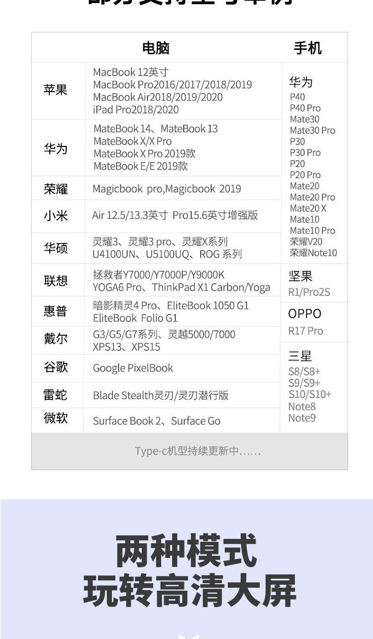 [Compatibilidad Universal]: Soporta todas las PC, teléfonos móviles y tabletas Tipo-C. 2016 / MacBook Pro, Surface Go, Surface Book 2, 2017 iMac, Macbook 2018/2017/2016, Samsung Galaxy S9 / S8 / S8 Plus / Note 8, Huawei Mate 10, HTC U11, PixelBook, Dell XPS 15 / XPS 13, HP Spectre X360, Chromebook, Chromebook Pixel, Intel NUC y muchos otros dispositivos Tipo C son todos compatibles.