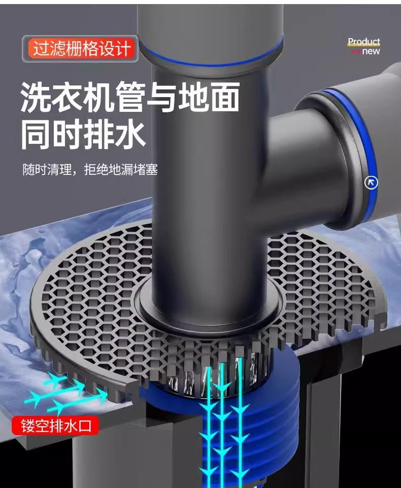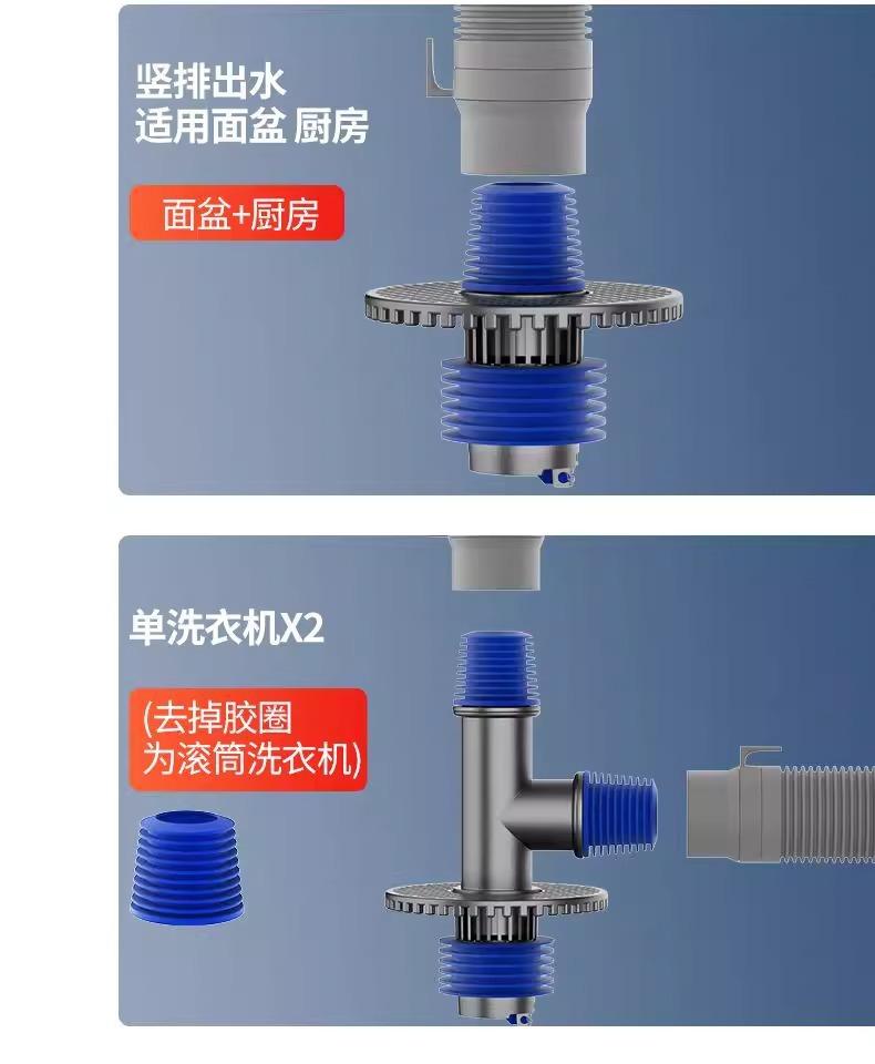 [Can be drained on the ground] Gun gray washing machine floor drain double-way cover [connected to one tube], ...