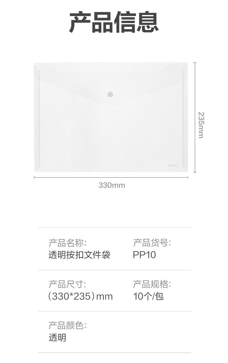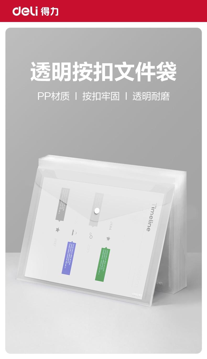 Bolsa de archivo con botón Deli A4, transparente, impermeable, para exámenes, tareas, estudiantes, almacenamiento de archivos de oficina