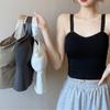 Camisola pequeña plisada de un solo cuello para mujer, para uso exterior, con almohadilla de pecho integrada y tirantes finos para los hombros.