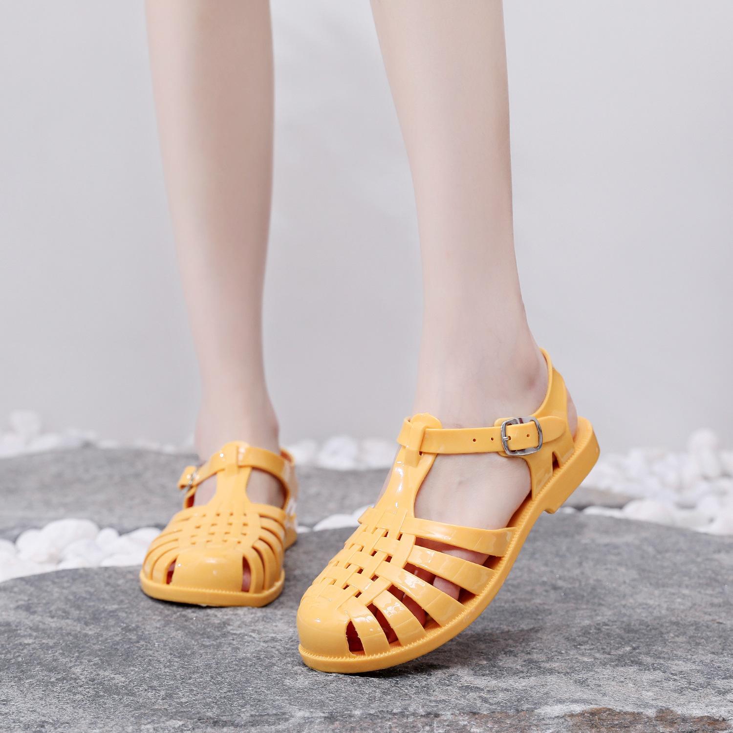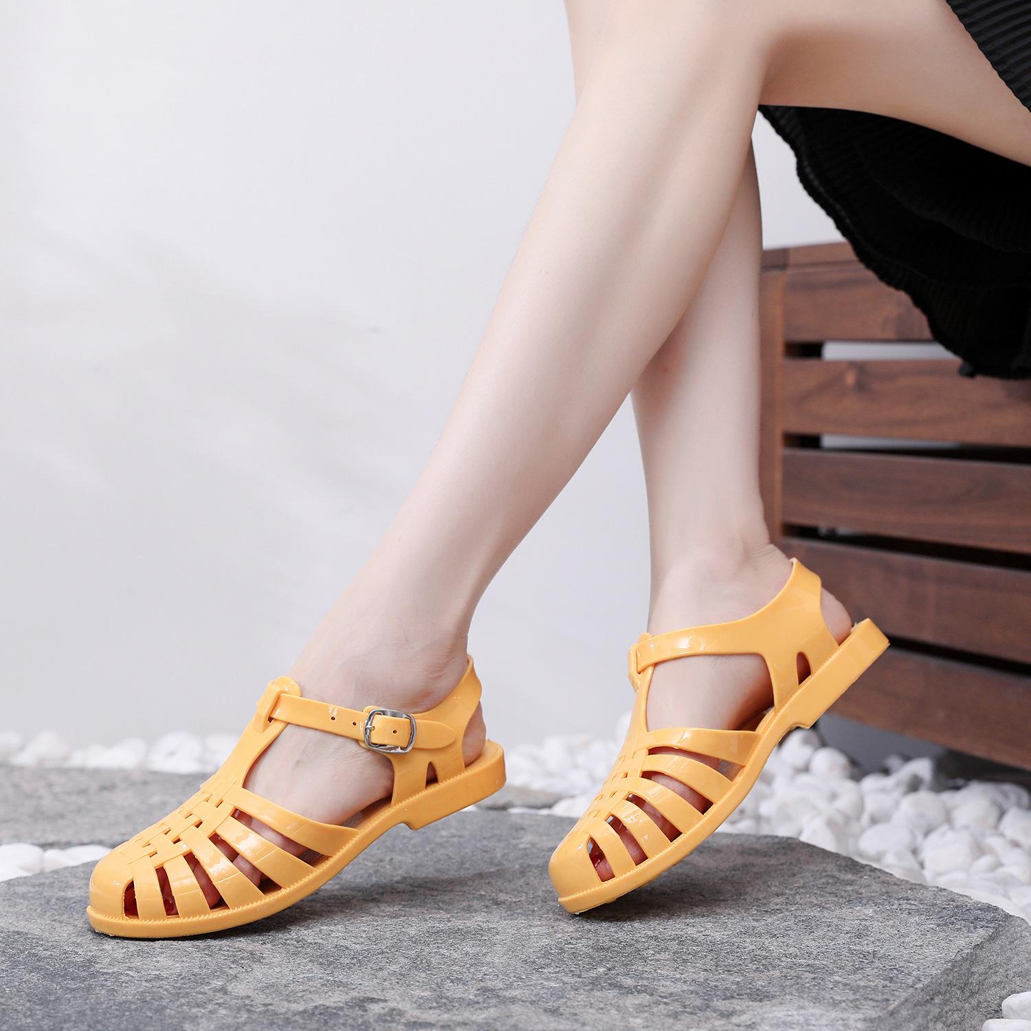 Verano Nuevo Estilo Sandalias Planas Romanas de Punta para Mujer, Sandalias Huecas de Suela Blanda, Versátiles, Modernas, Casuales, de Playa, de Gelatina
