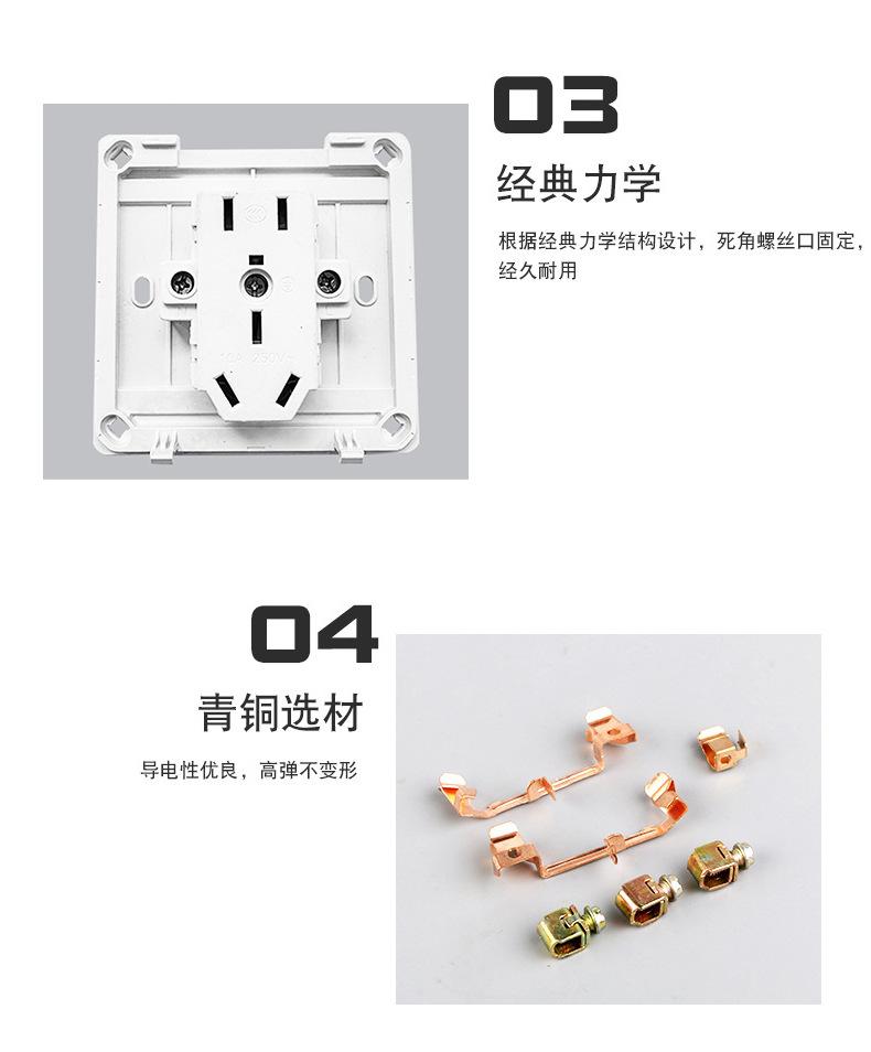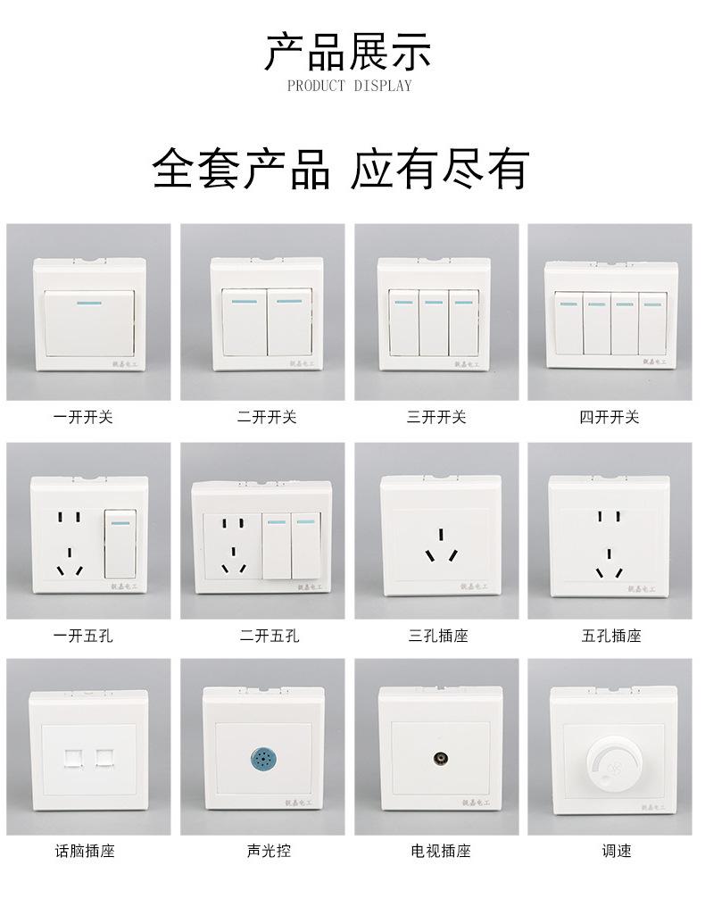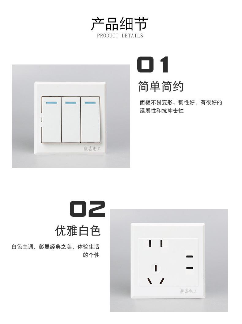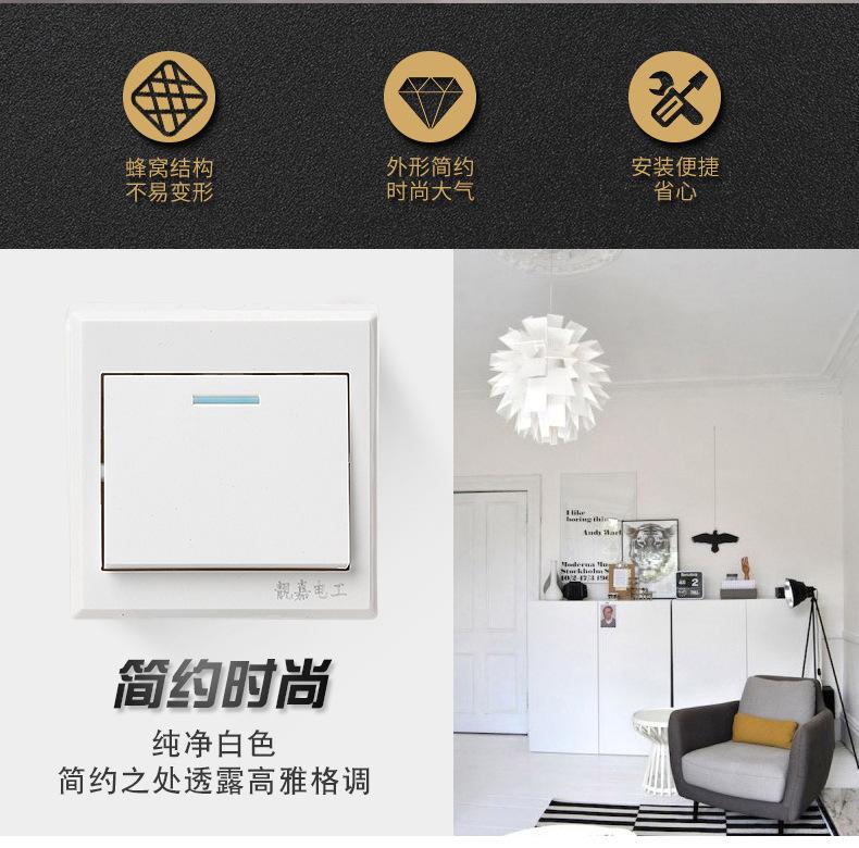 Venta al por mayor Interruptor de pared doméstico de grado de ingeniería con panel blanco, Interruptor simple con enchufe de cinco orificios Tipo 86 16A Enchufe de cinco orificios con protección contra sobretensiones
