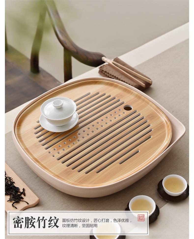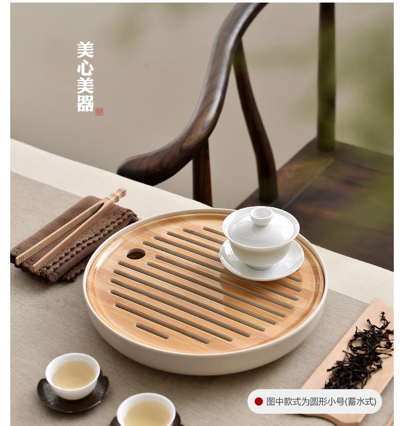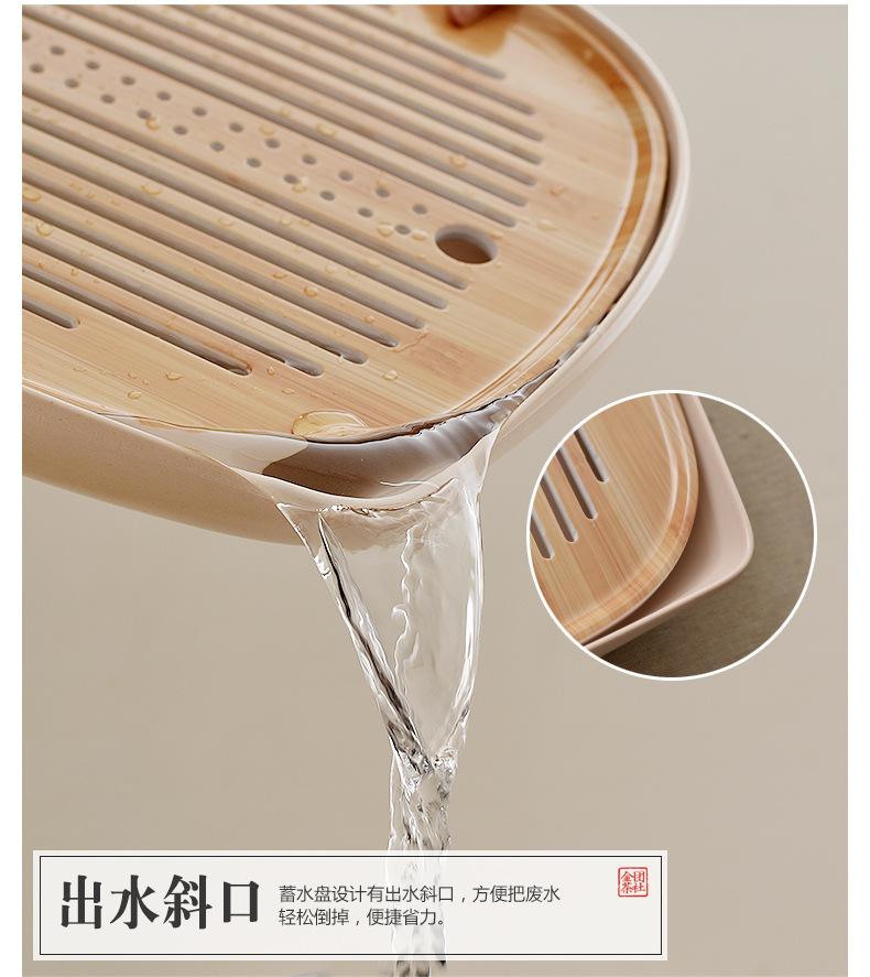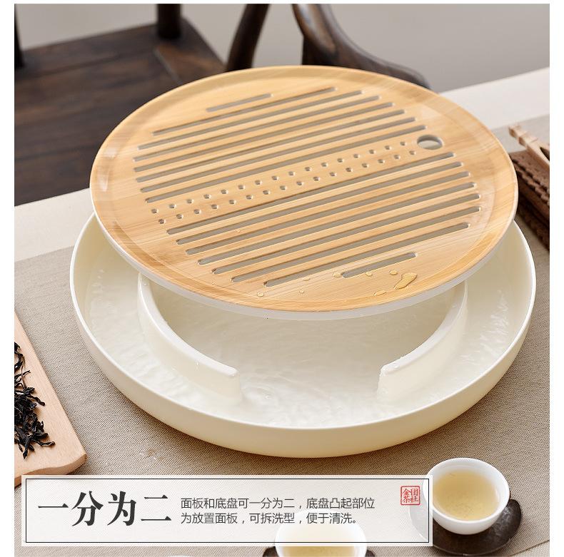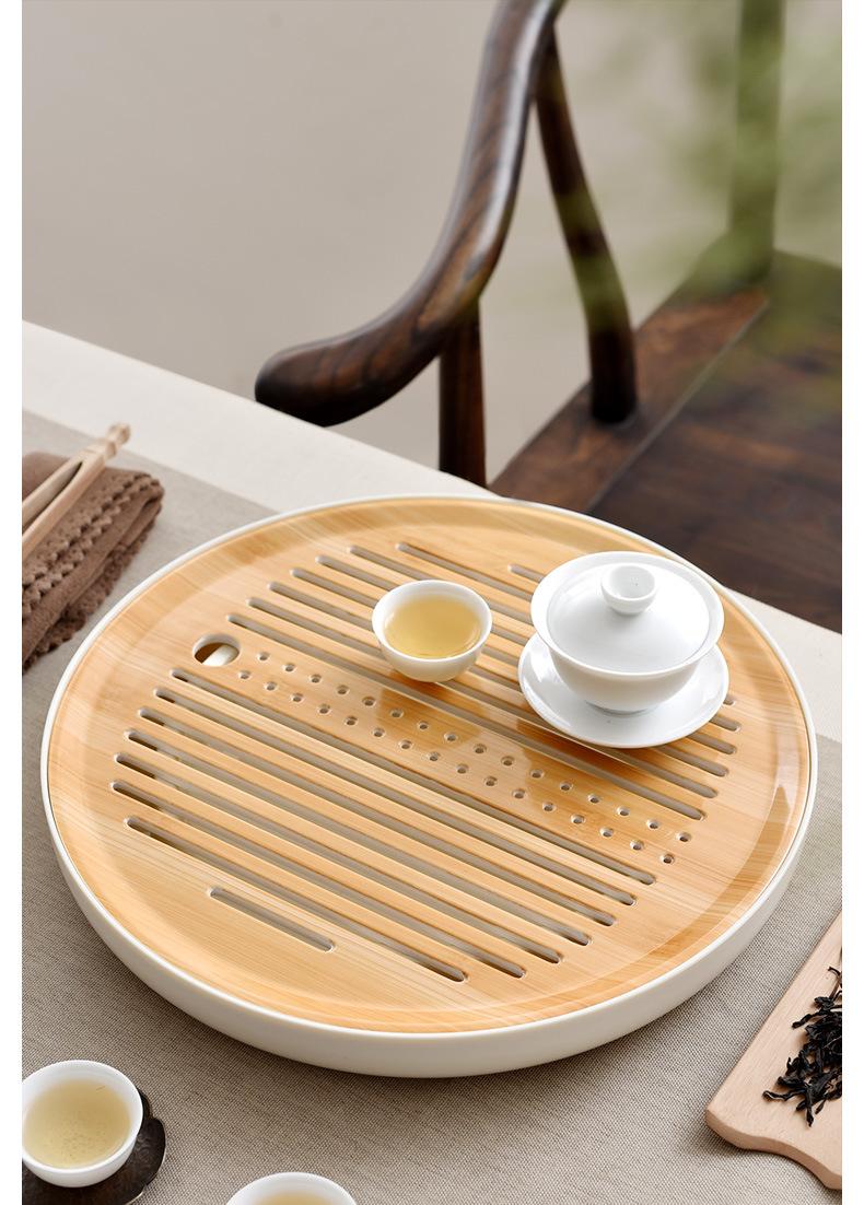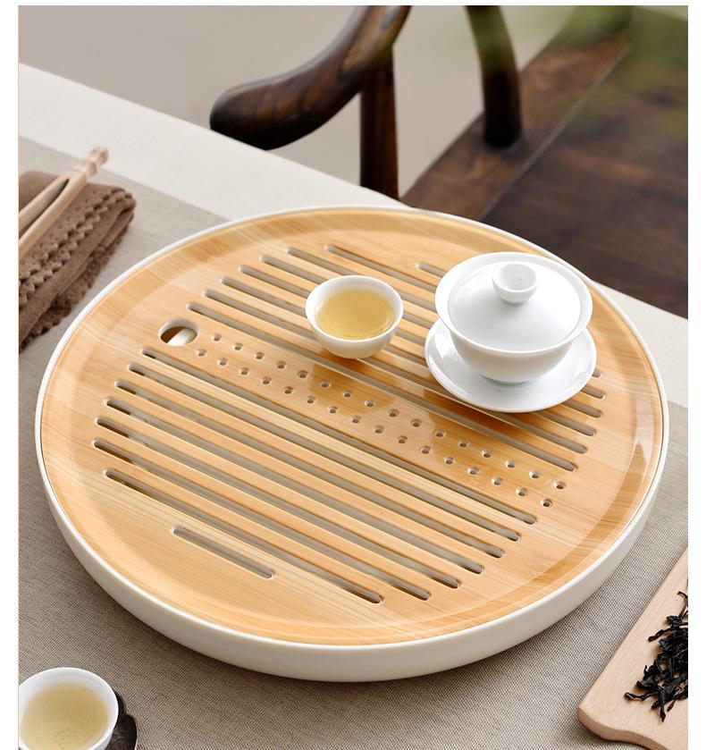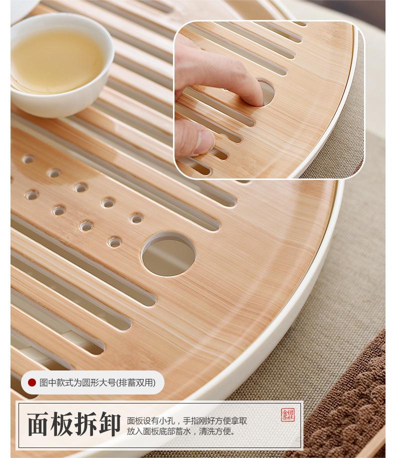 Bandeja Redonda para Té de Almacenamiento de Agua Doméstica Patrón de Bambú Mesa Pequeña para Té Kung Fu Sencilla Mar de Té Plástico Drenaje Bandeja de Drenaje