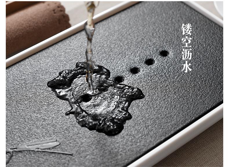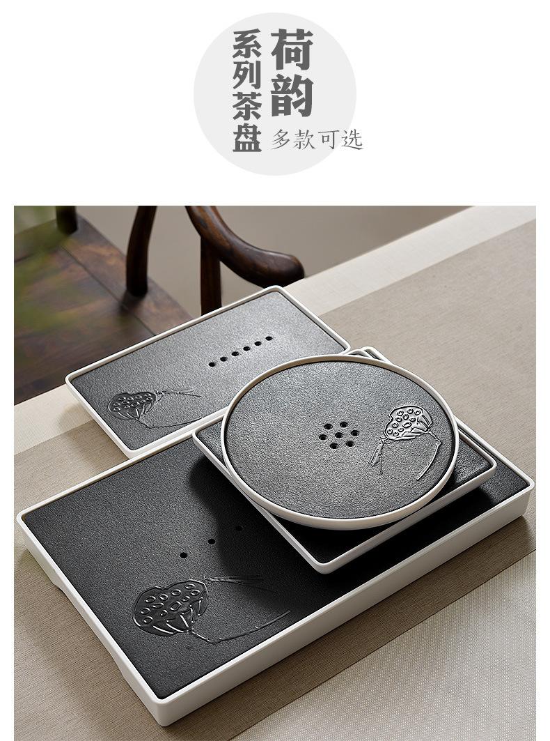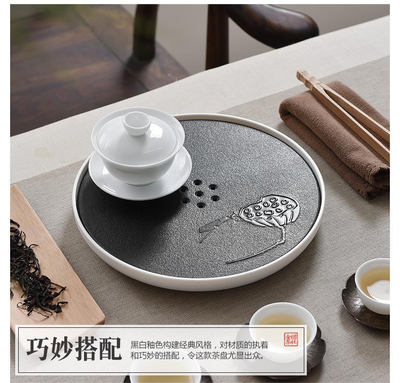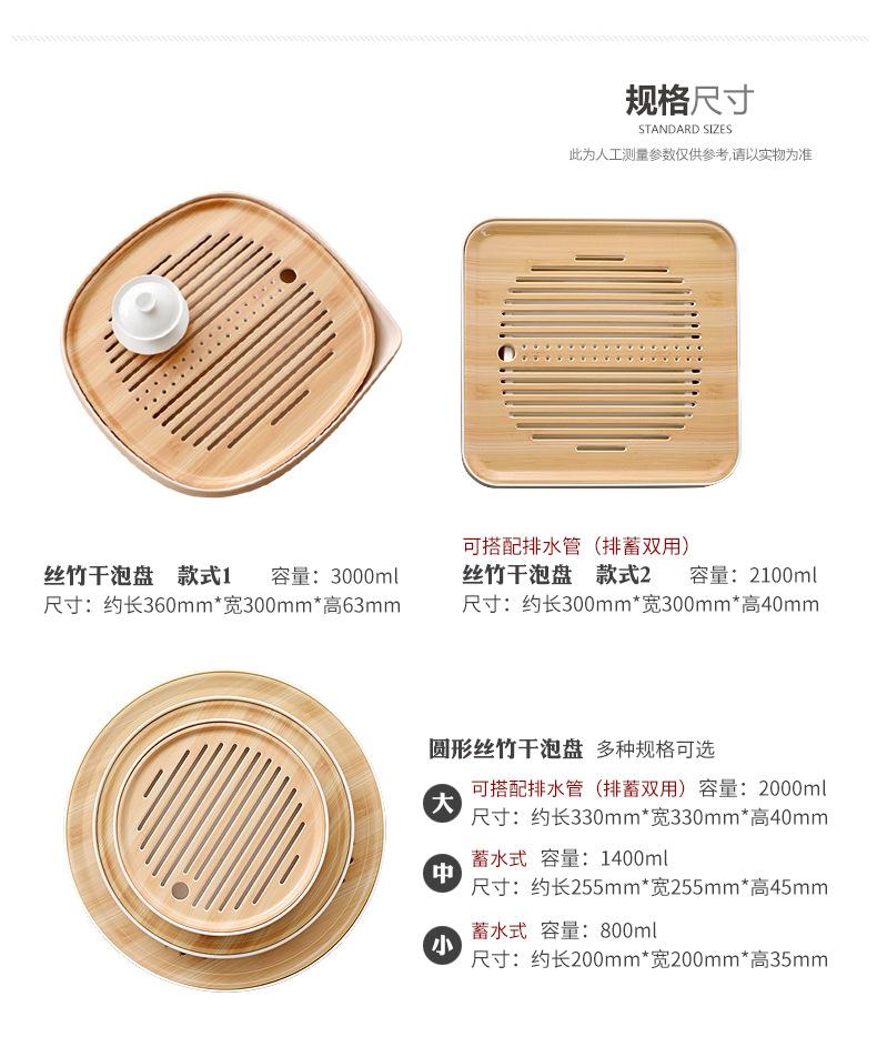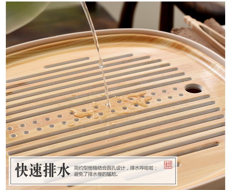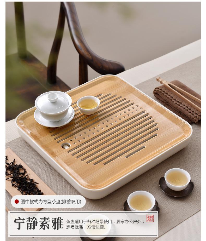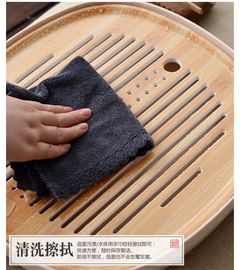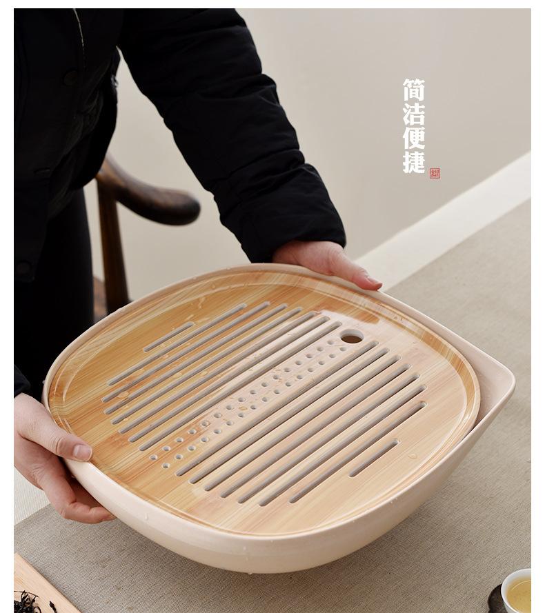 Bandeja Redonda para Té de Almacenamiento de Agua Doméstica Patrón de Bambú Mesa Pequeña para Té Kung Fu Sencilla Mar de Té Plástico Drenaje Bandeja de Drenaje