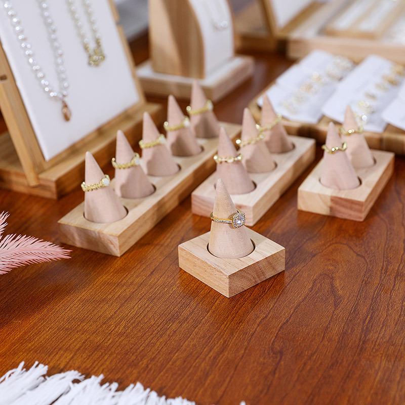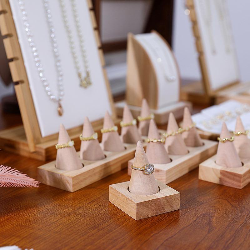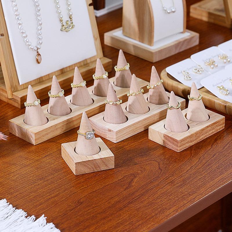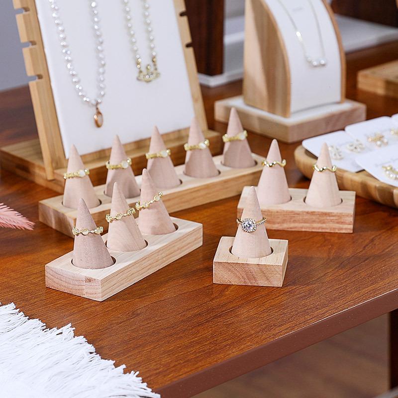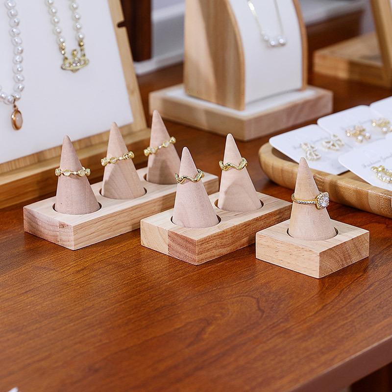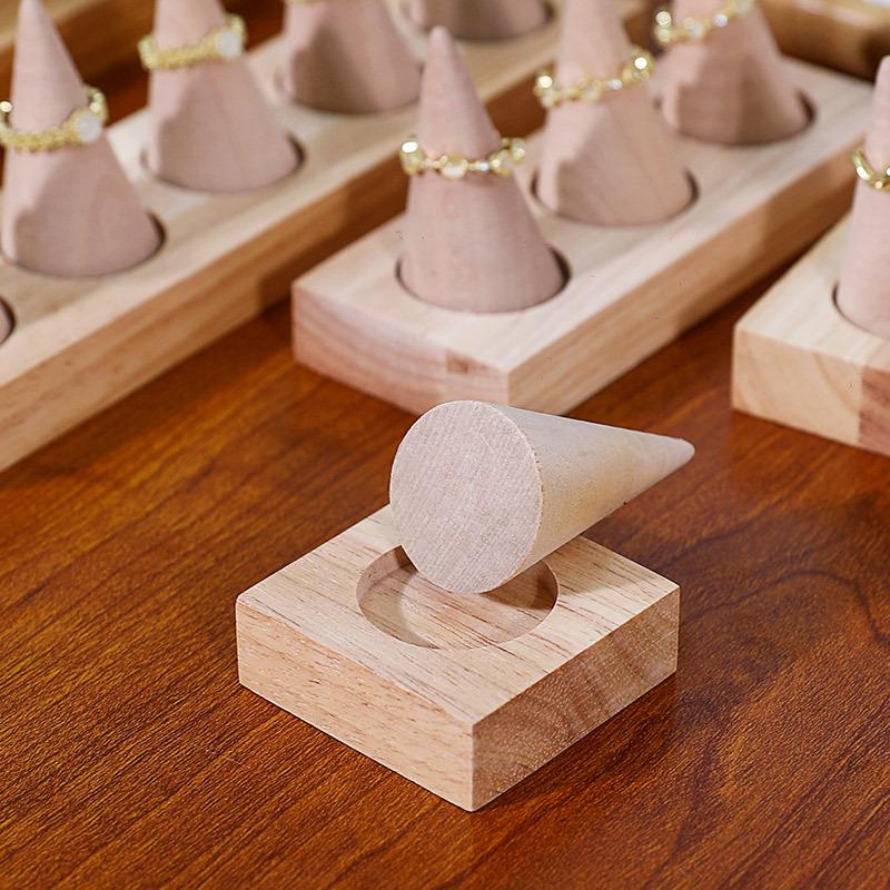 Cono de Madera Maciza para Exhibición de Anillos Accesorios Creativos para Almacenamiento de Anillos Estante para Joyería Accesorios de Fotografía para Joyería