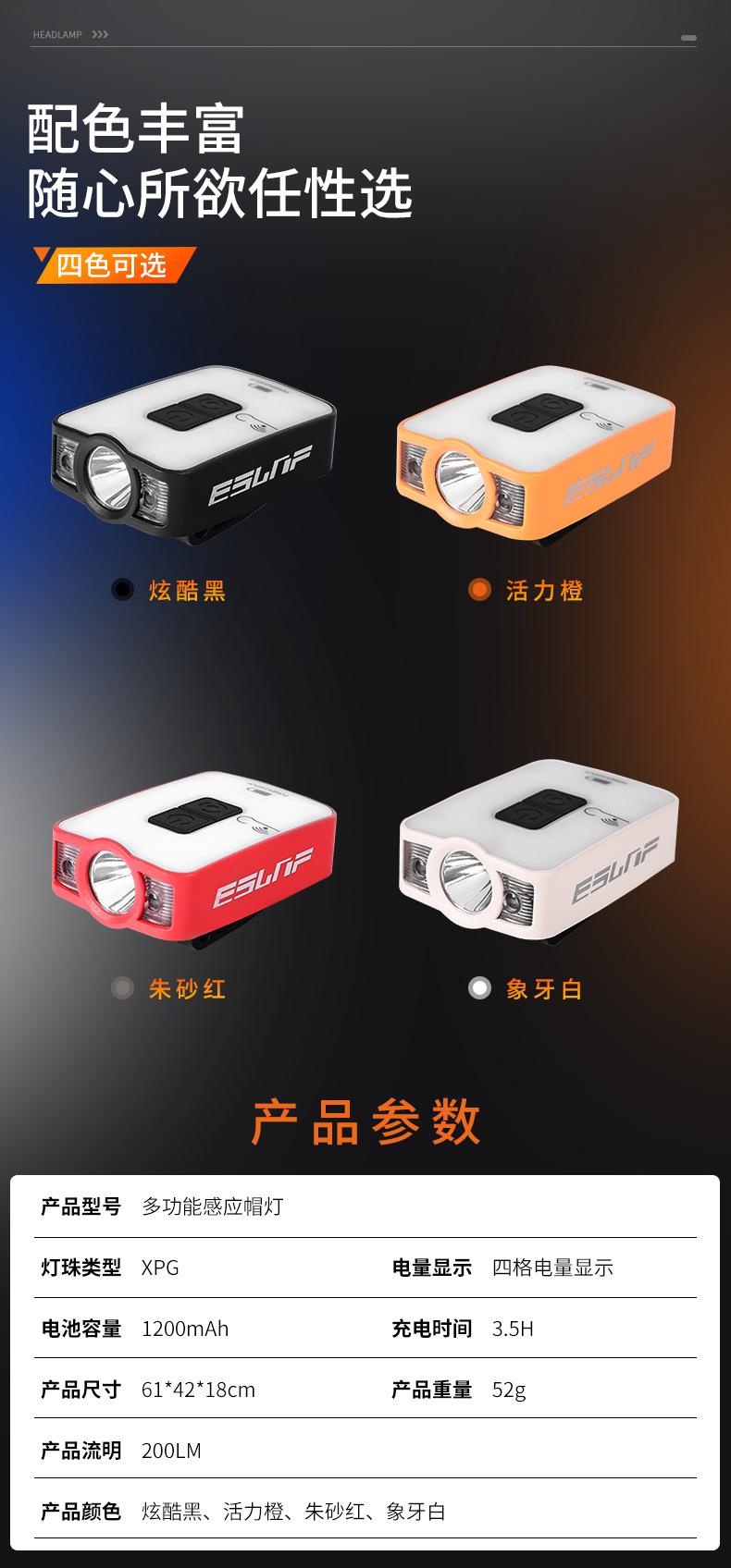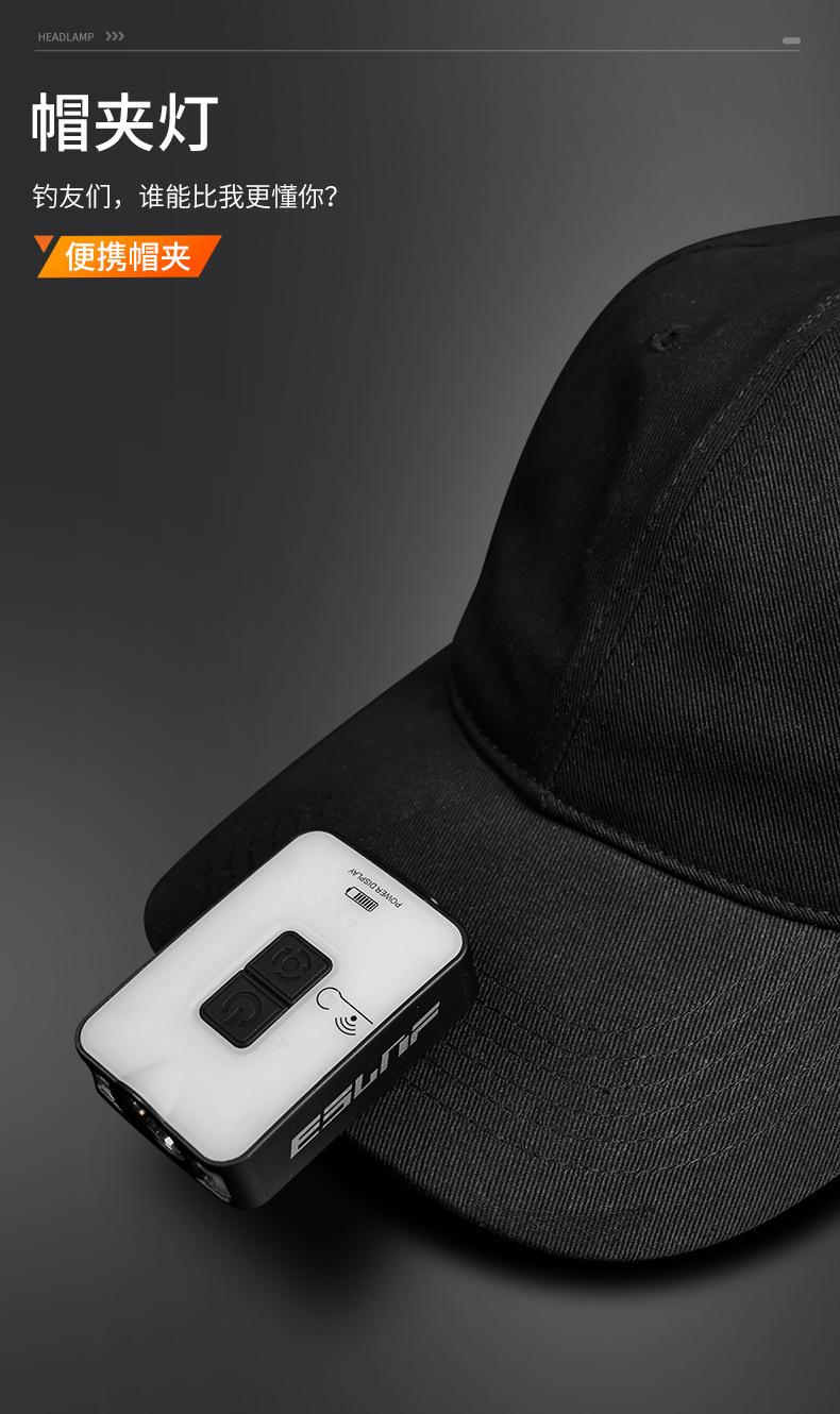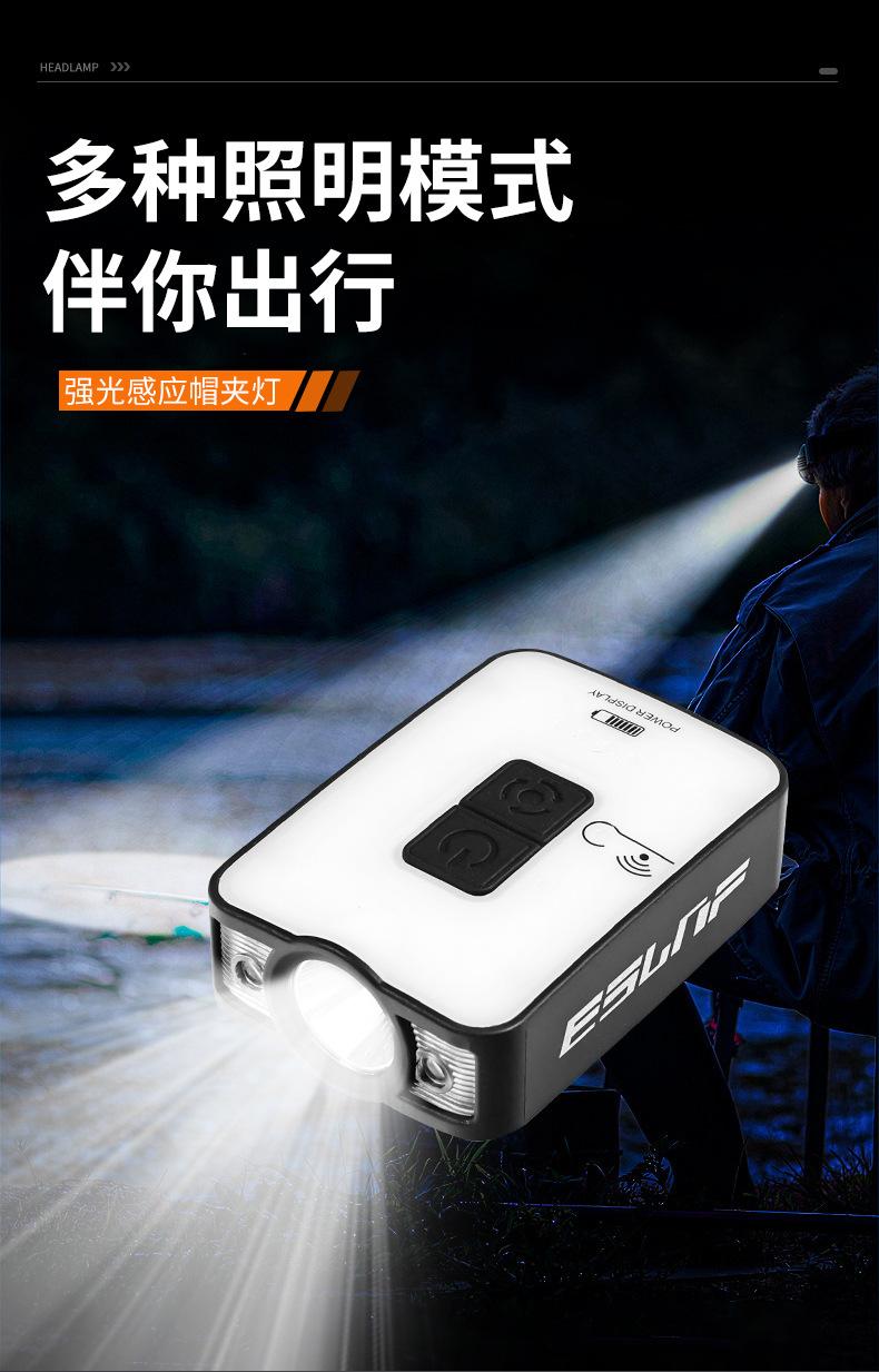 Nueva Lámpara Frontal para Camping Inducción Inteligente Lámpara con Clip para Gorra Pesca Nocturna Luz Fuerte Gran Capacidad Lámpara de Cebo Montada en la Cabeza Lámpara de Pesca