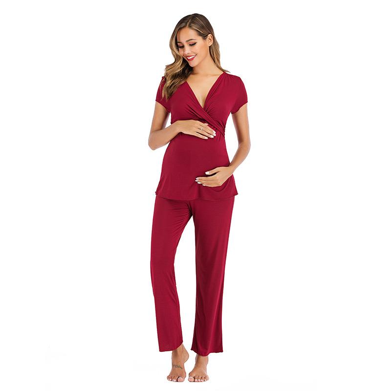 Conjunto de Pijama para Mujeres Embarazadas Transfronterizo Amazon Modal Maternidad Postparto Embarazo Lactancia Servicio a Domicilio