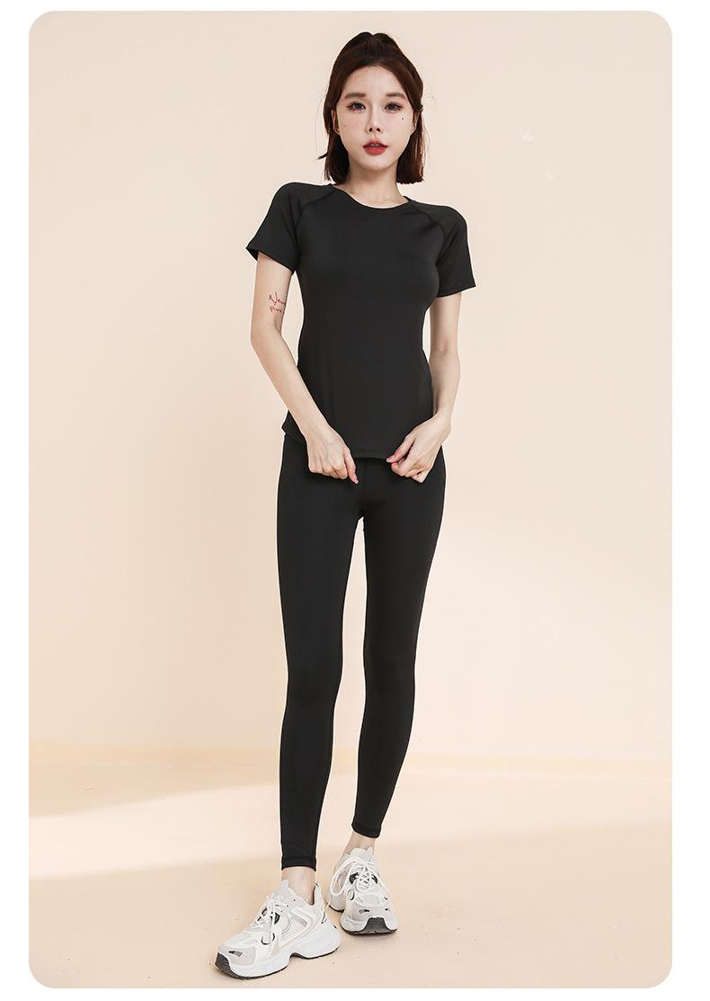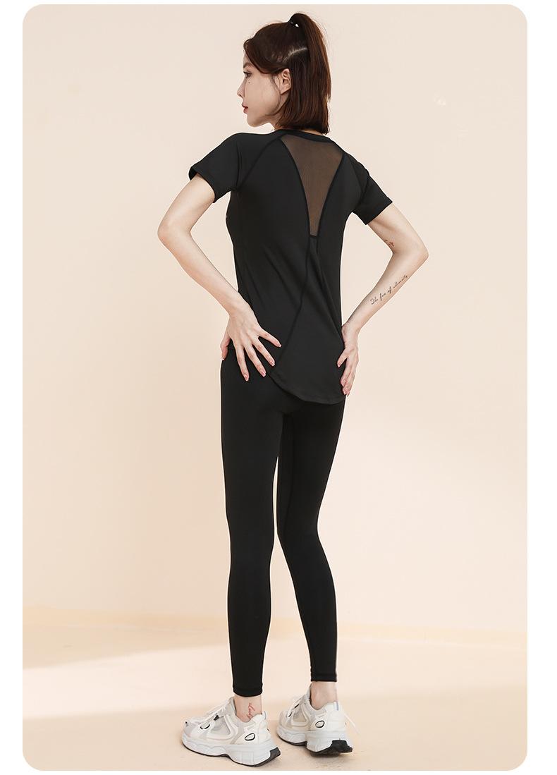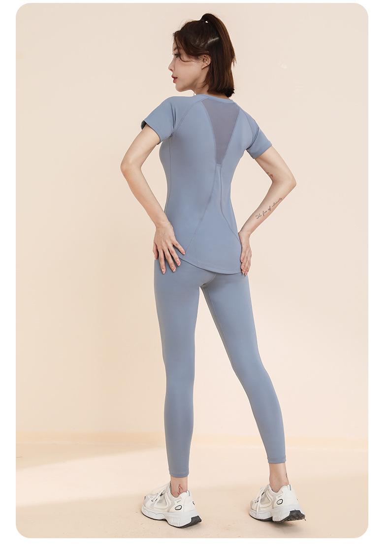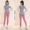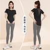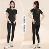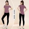 Traje de yoga transpirable adelgazante para correr, deportes, pantalones de yoga, almohadilla de pecho integrada, malla, manga corta, ropa de fitness