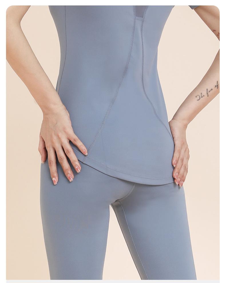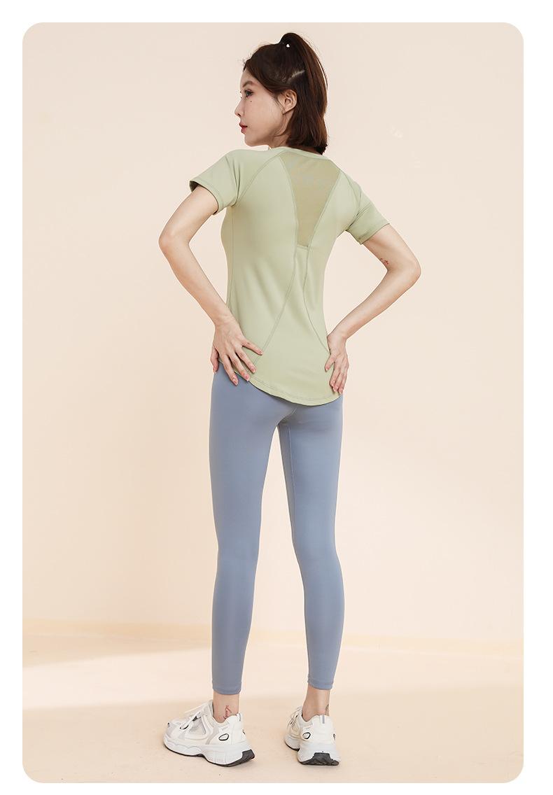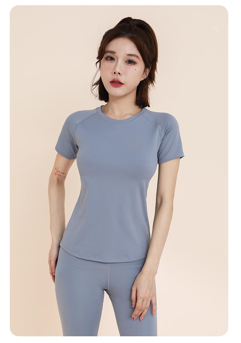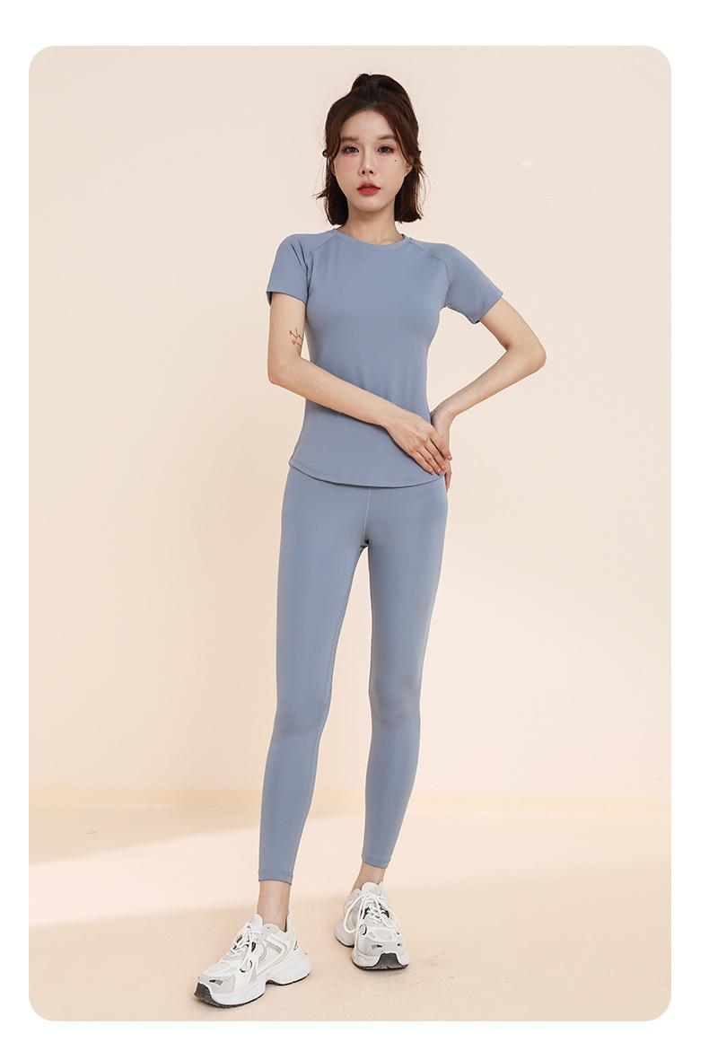 Traje de yoga transpirable adelgazante para correr, deportes, pantalones de yoga, almohadilla de pecho integrada, malla, manga corta, ropa de fitness