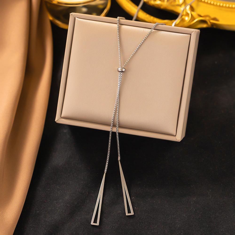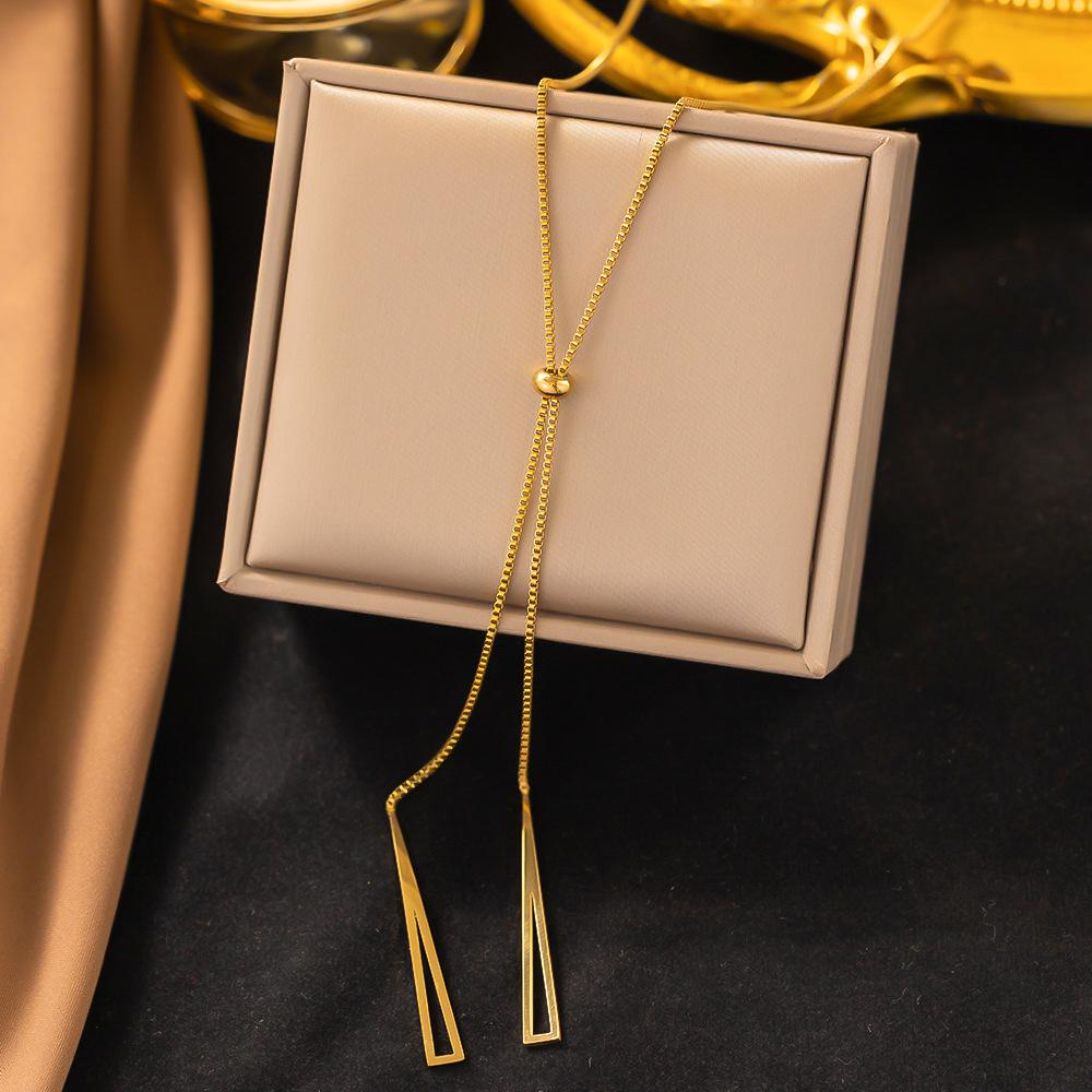 Europeo y Americano Transfronterizo 2023 Nuevo Coreano de Alta Calidad Oro Borla Triangular Extraíble Cadena de Clavícula de Acero de Titanio Que No Se Desvanece