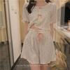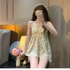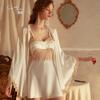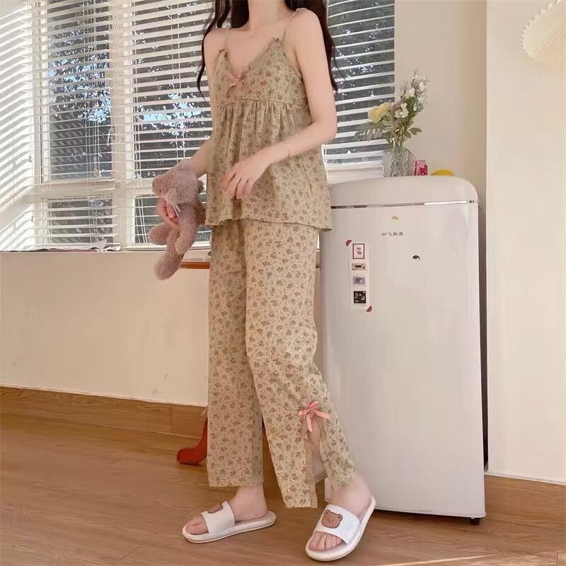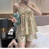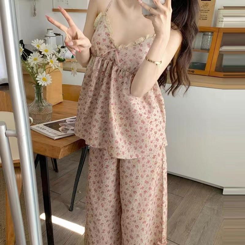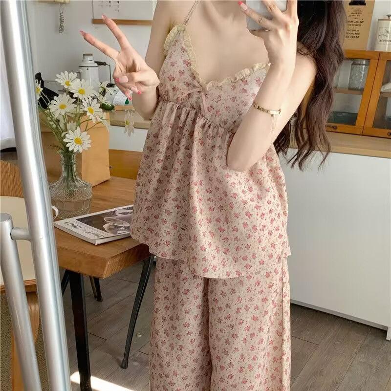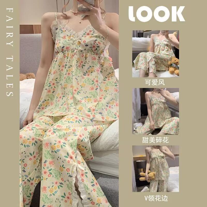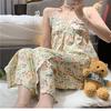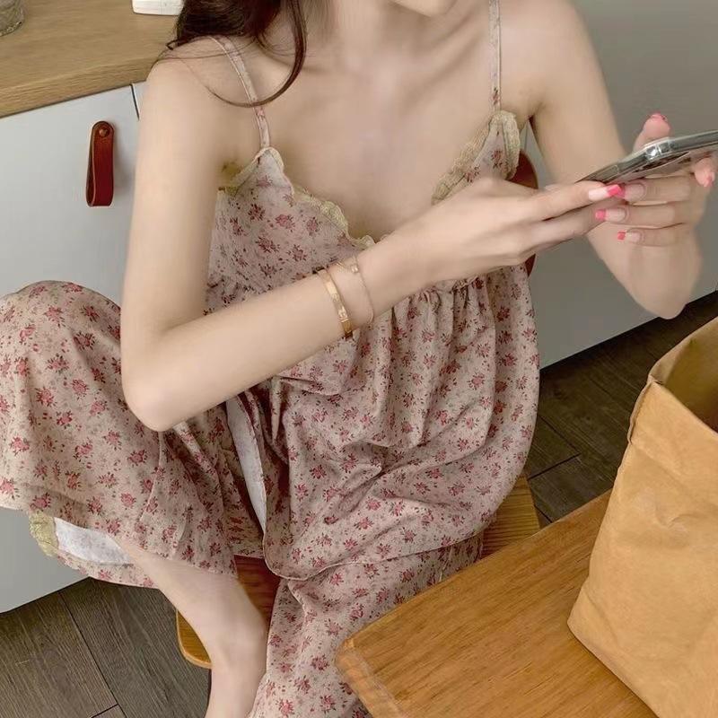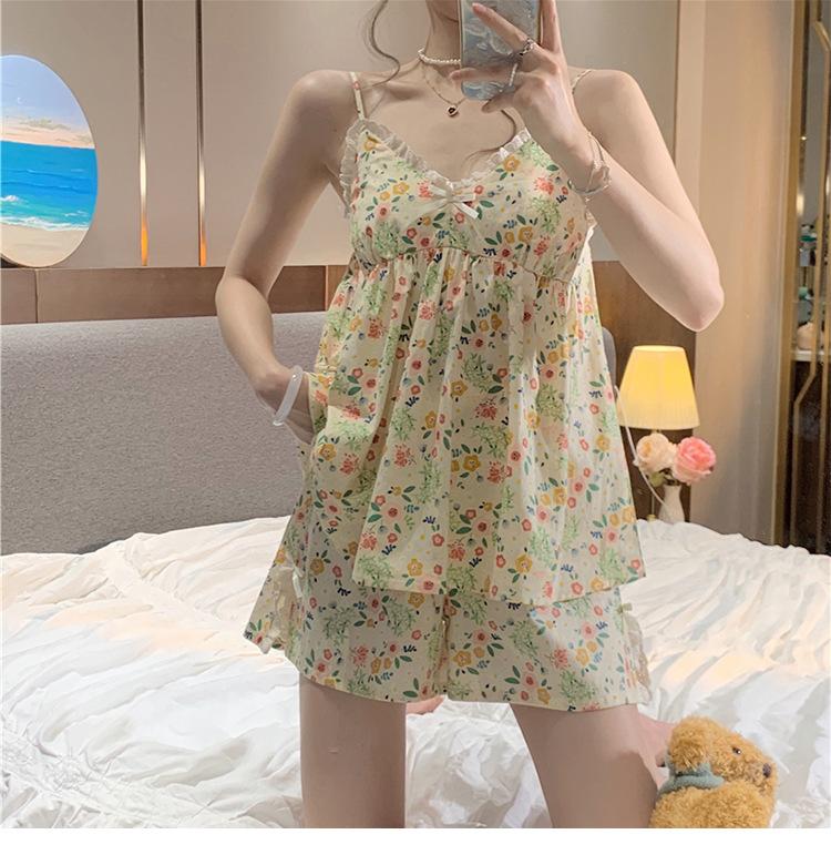 Pijama estilo pastoral sexy con escote en V y tirantes para mujer, con almohadilla para el pecho, de encaje fresco de verano, ropa para el hogar