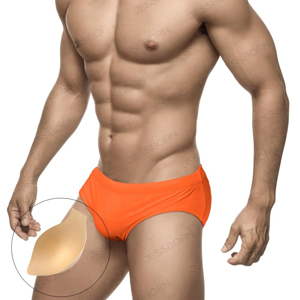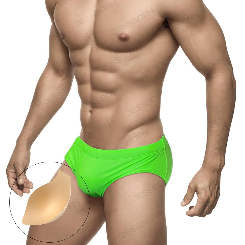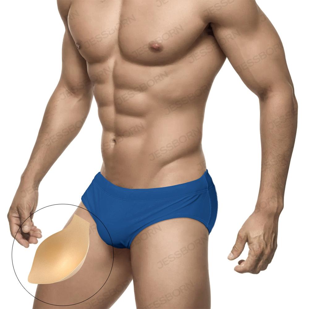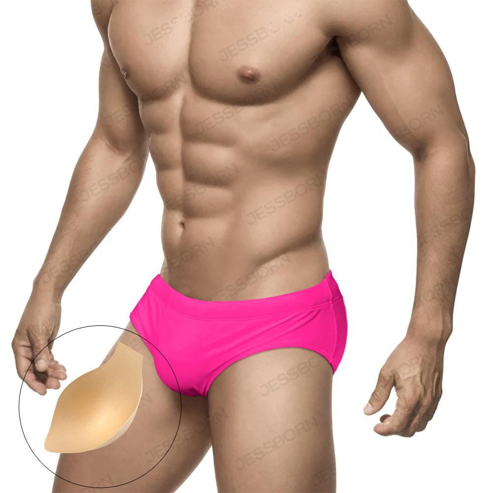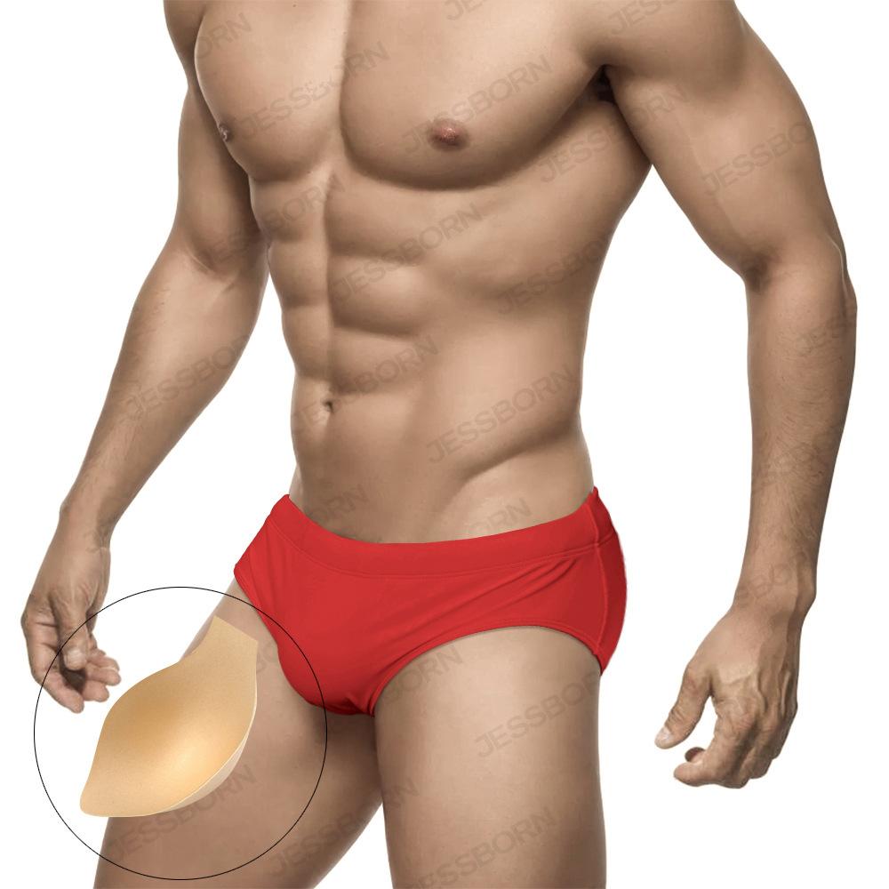 Bañador triangular JESSBORN para hombre con copas, de nailon de color liso, de cintura baja, sexy, para playa y aguas termales, con diseño transfronterizo.