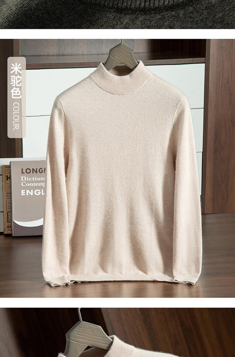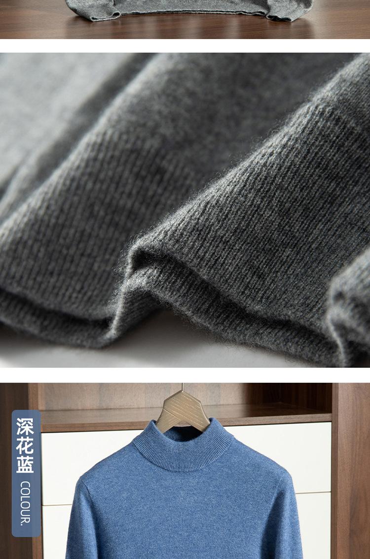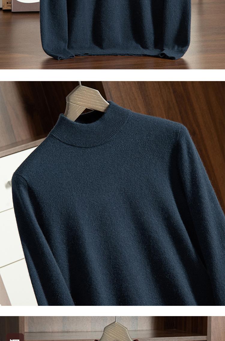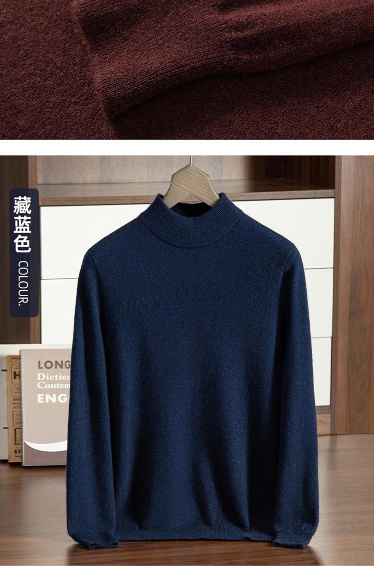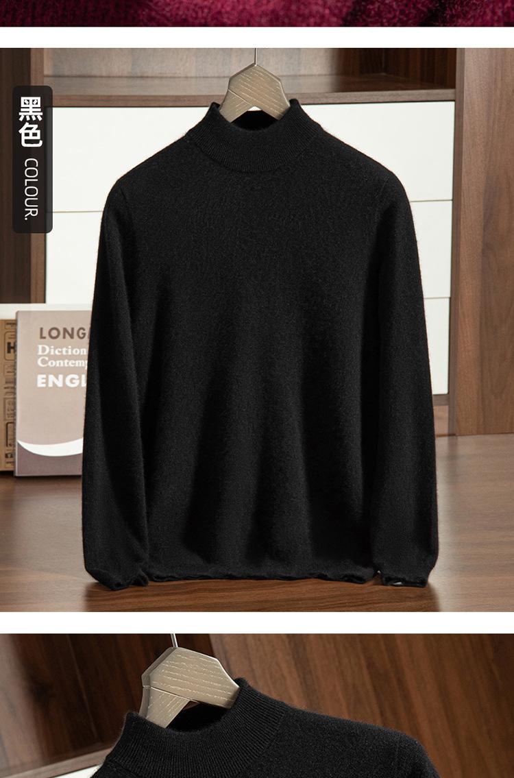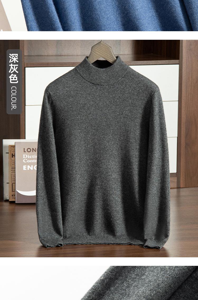 Ropa de Primera Línea Otoño e Invierno Suéter de Cachemira de Montaña para Hombre Doble Capa Cuello Medio Alto Plano Tejido de Punto Casual de Negocios Manga Larga