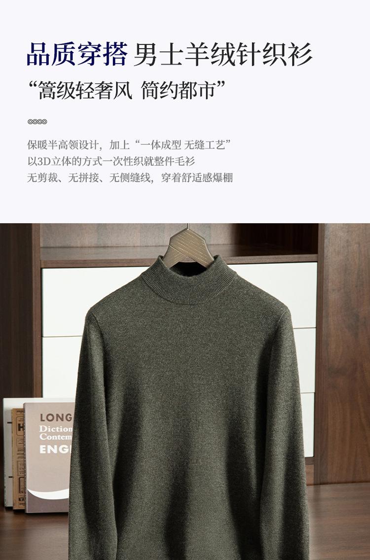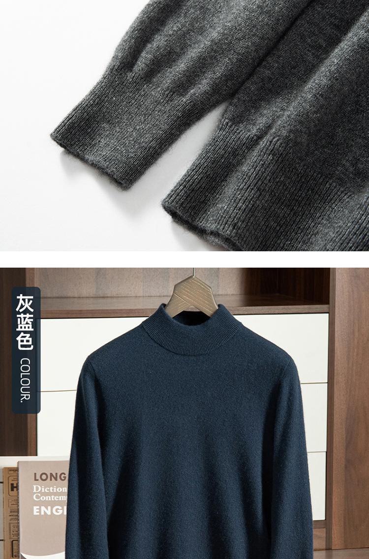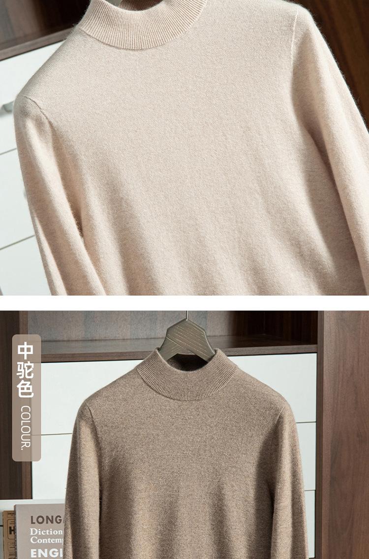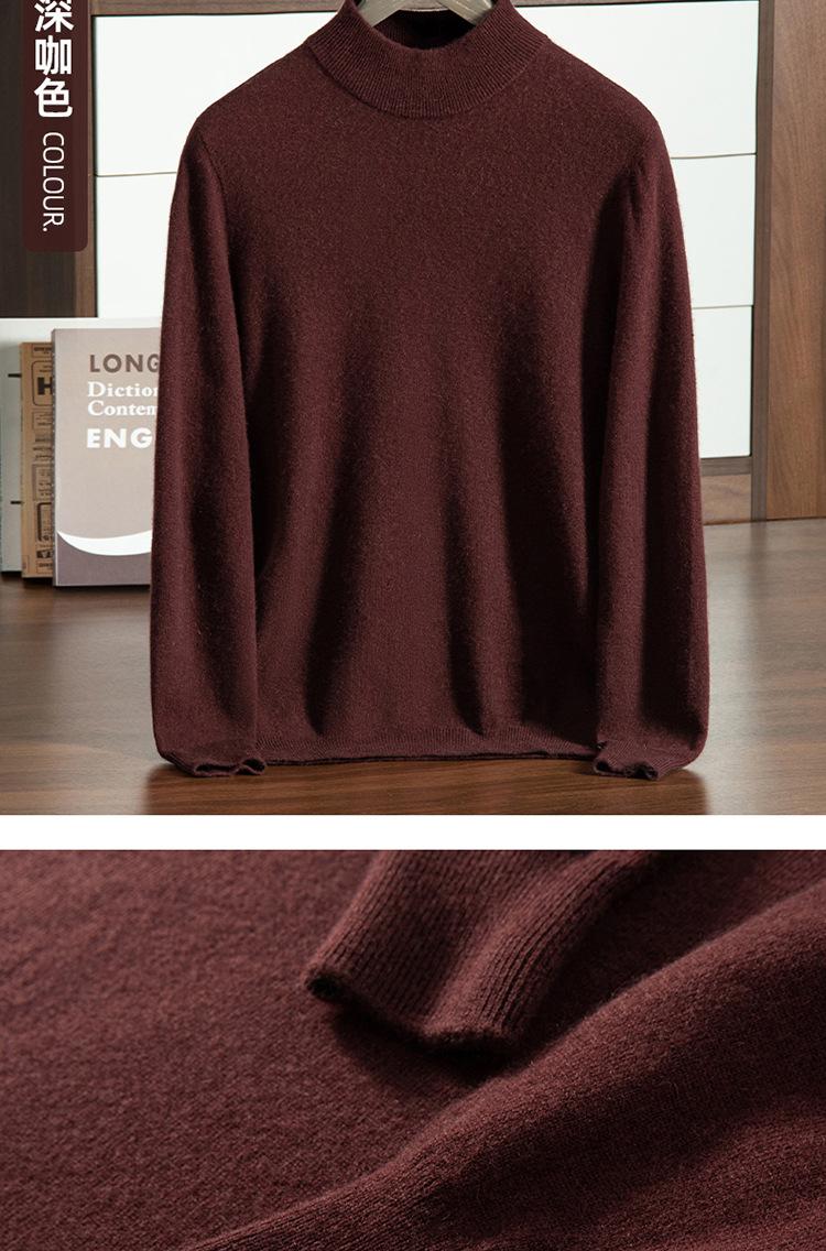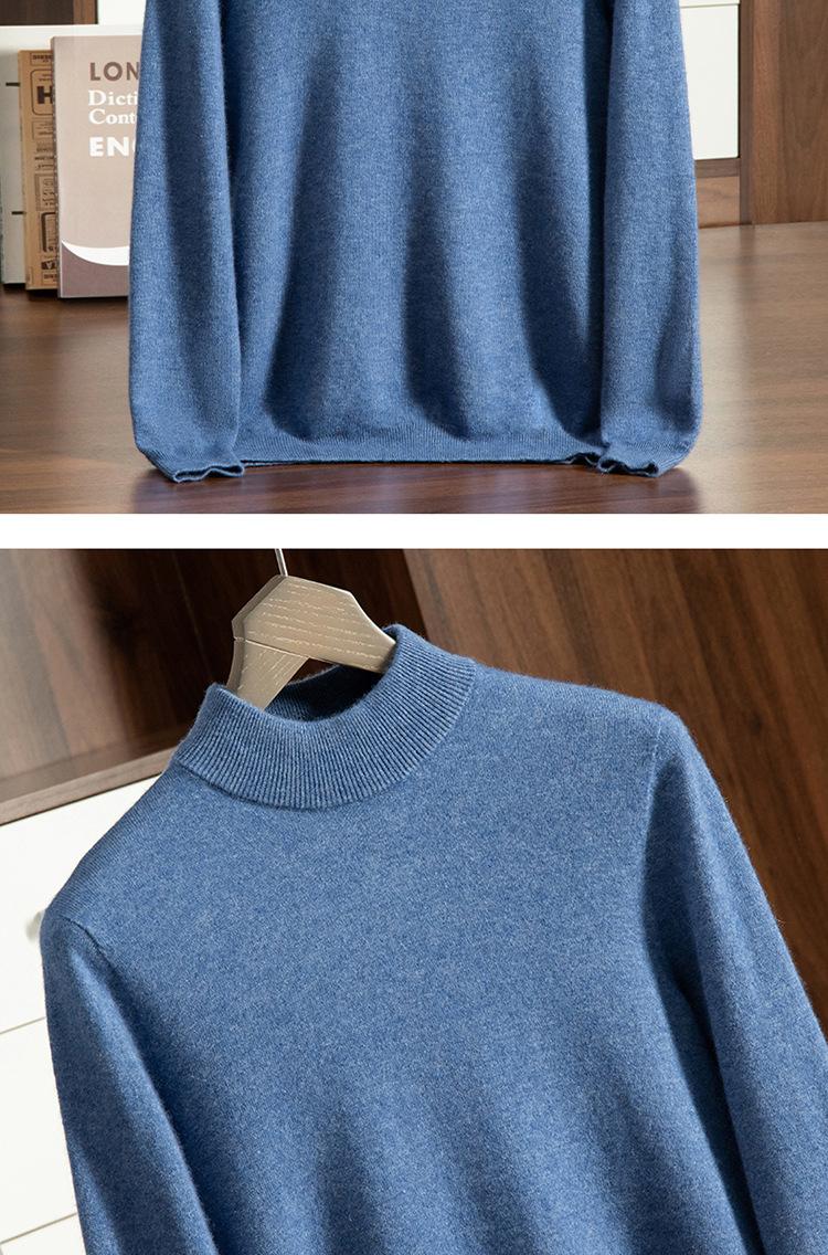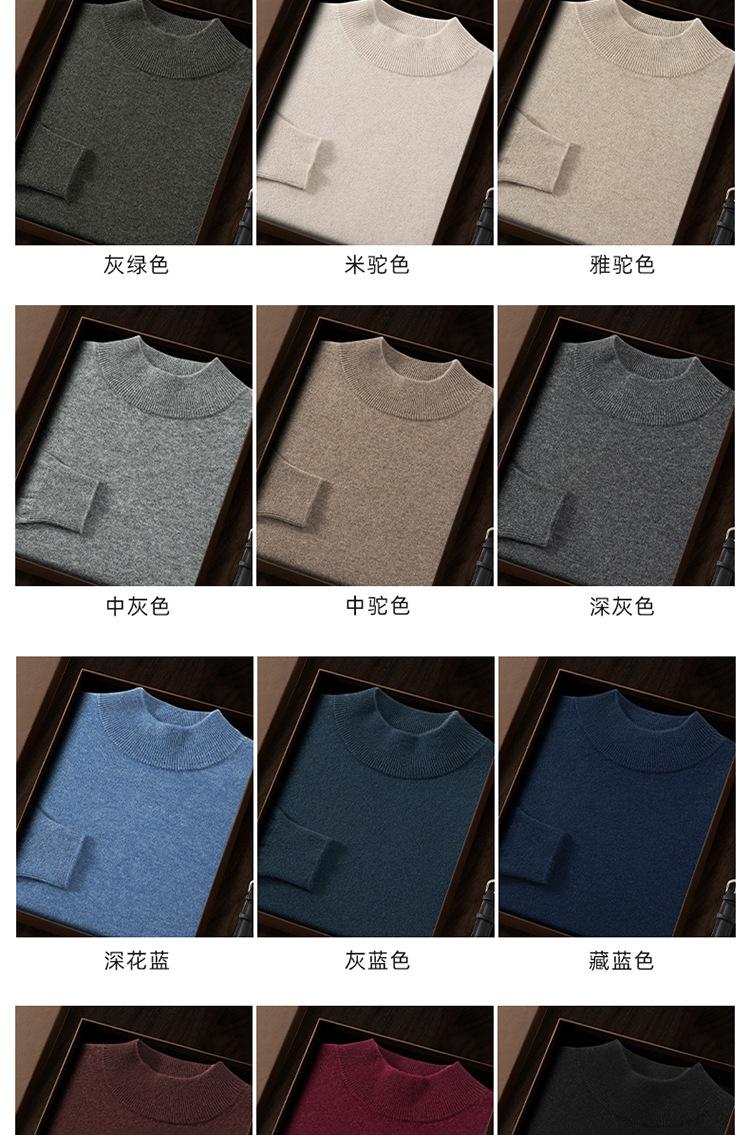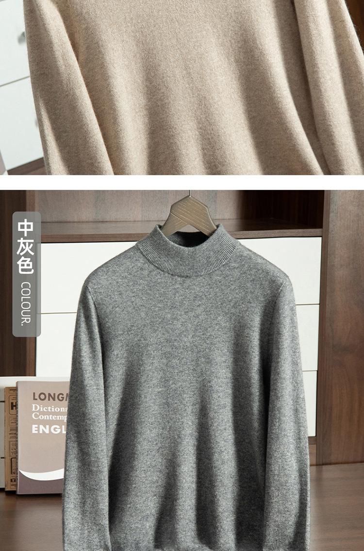 Ropa de Primera Línea Otoño e Invierno Suéter de Cachemira de Montaña para Hombre Doble Capa Cuello Medio Alto Plano Tejido de Punto Casual de Negocios Manga Larga