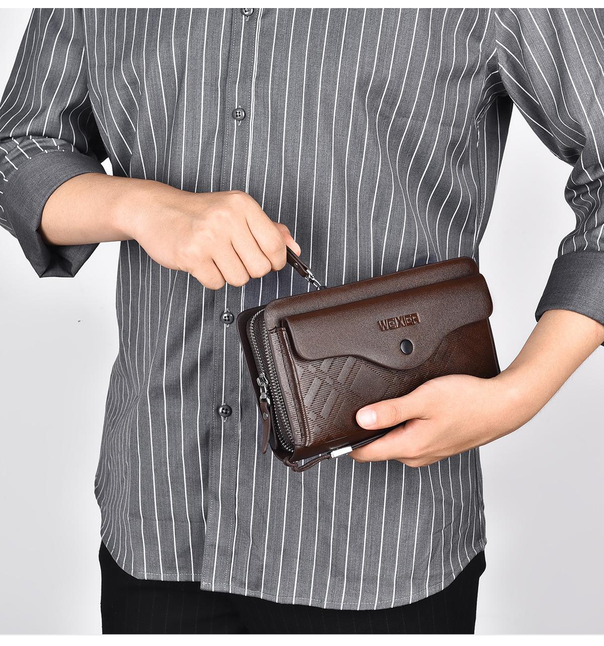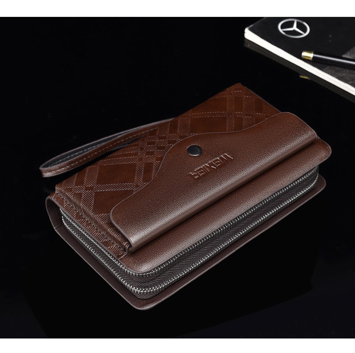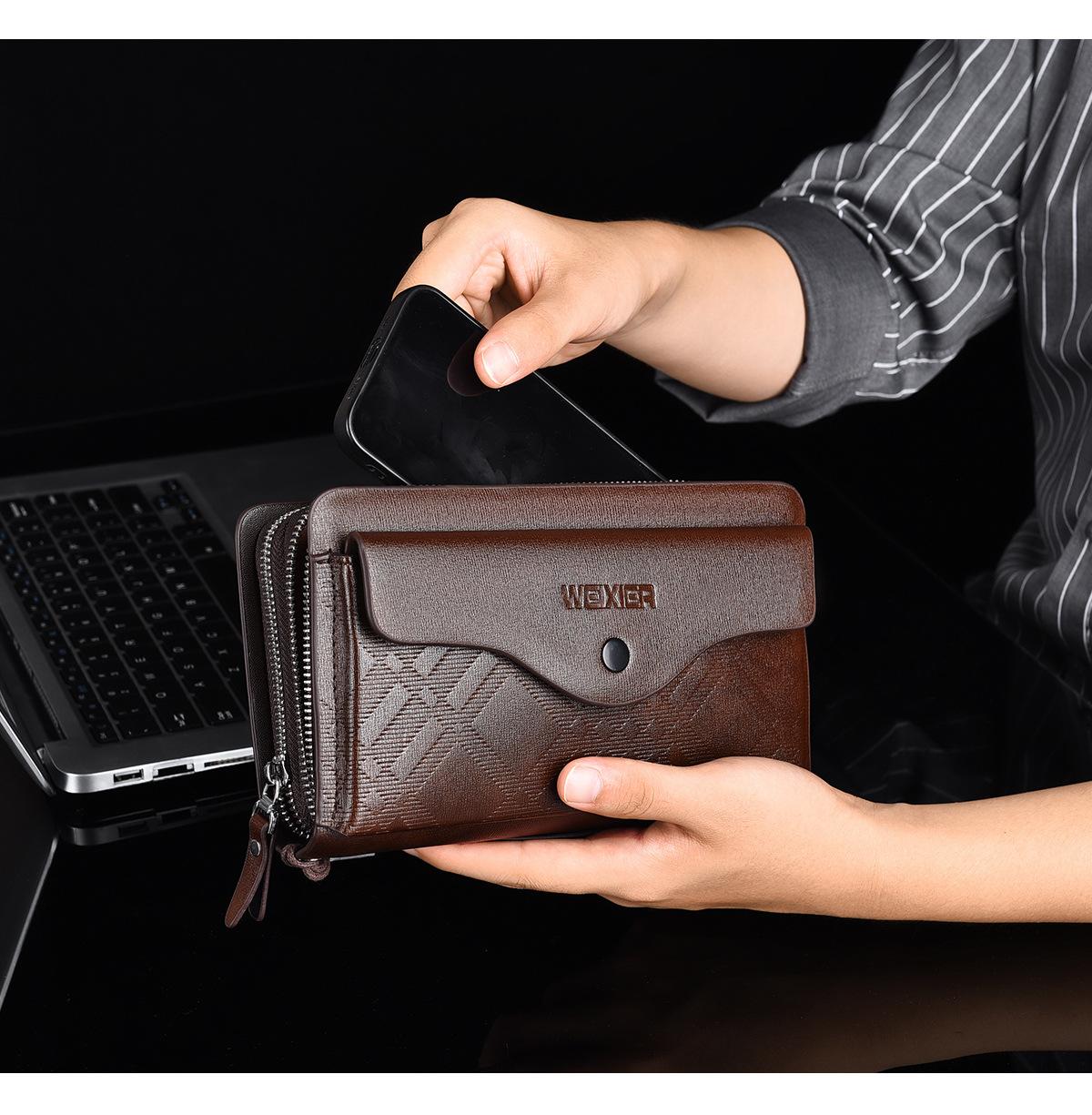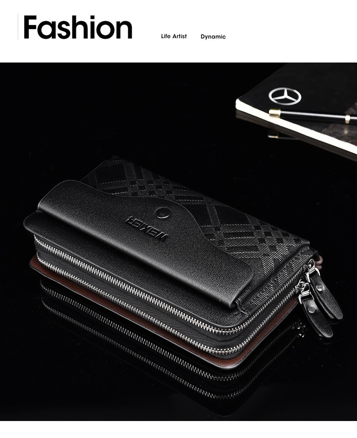 Cartera larga casual para hombre, clutch portátil de negocios, PU, gran capacidad, doble cremallera, tarjetero múltiple