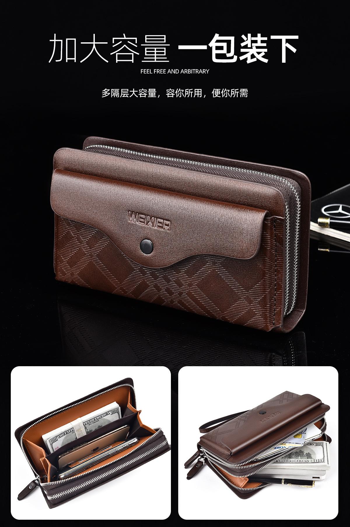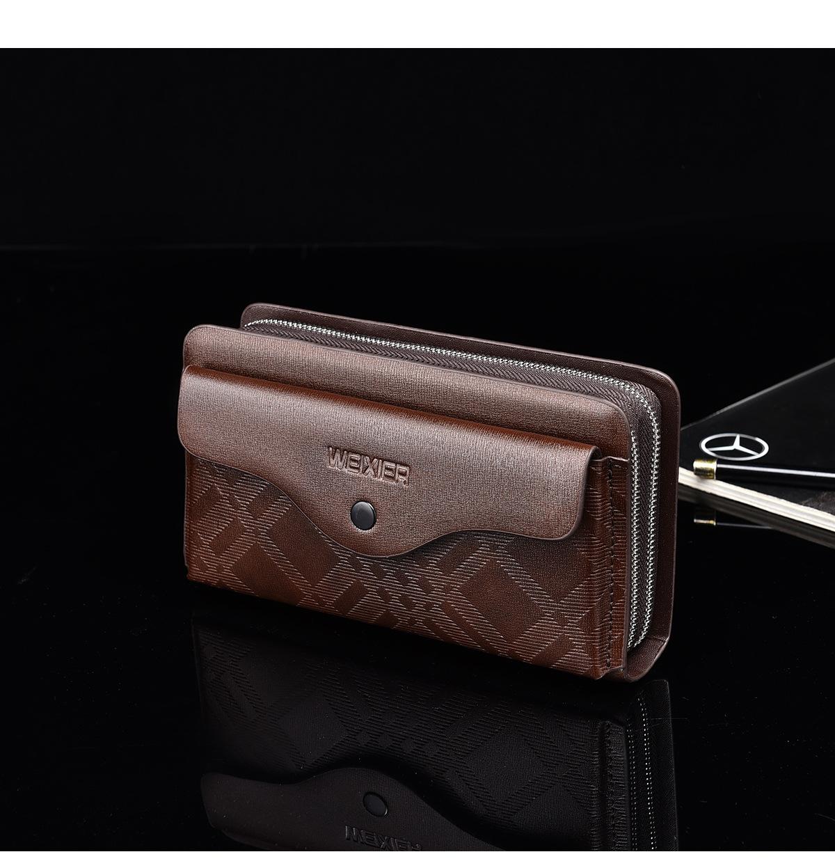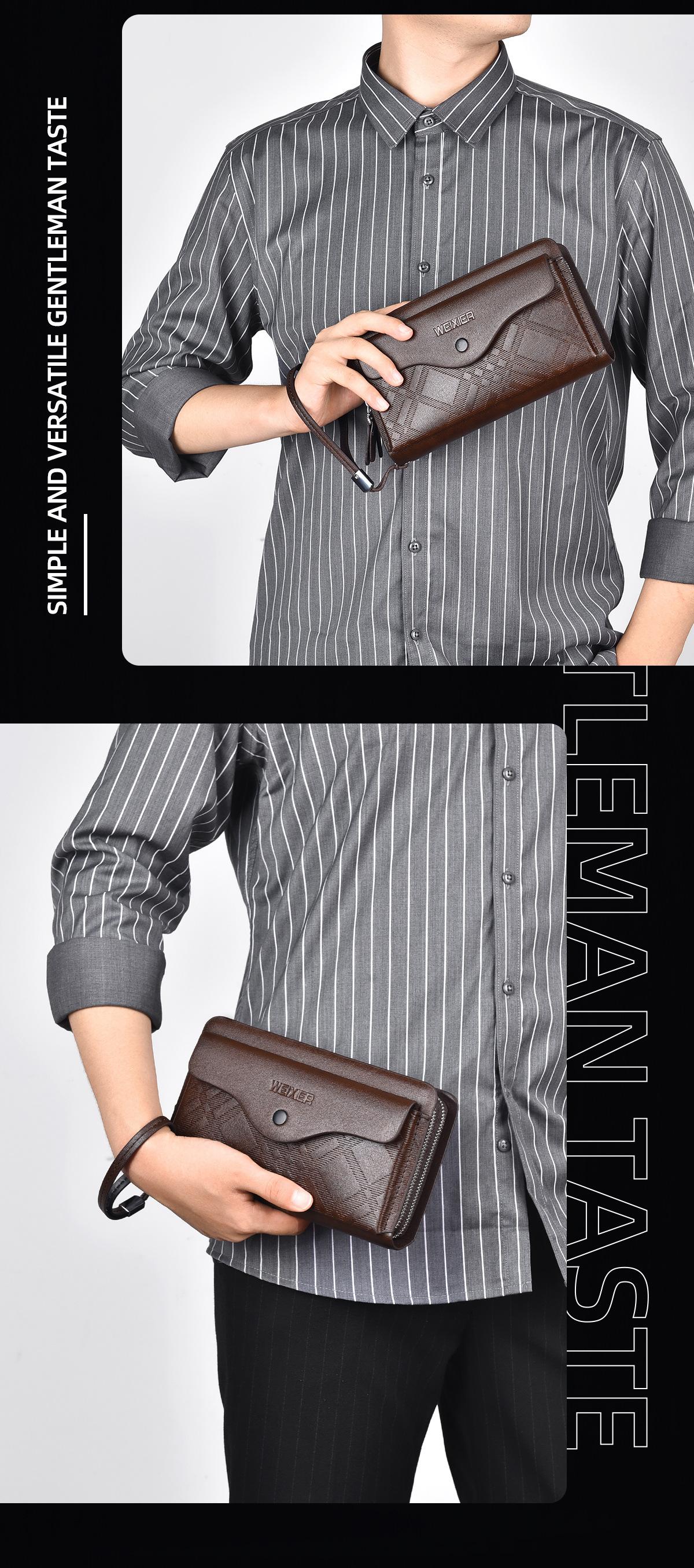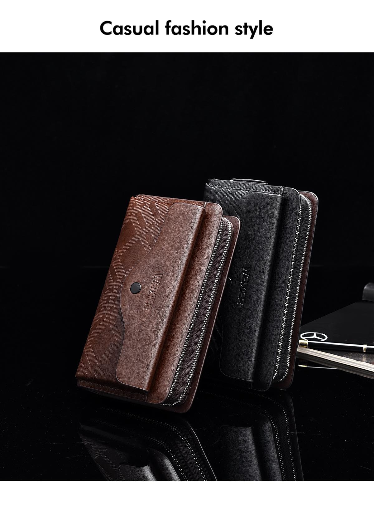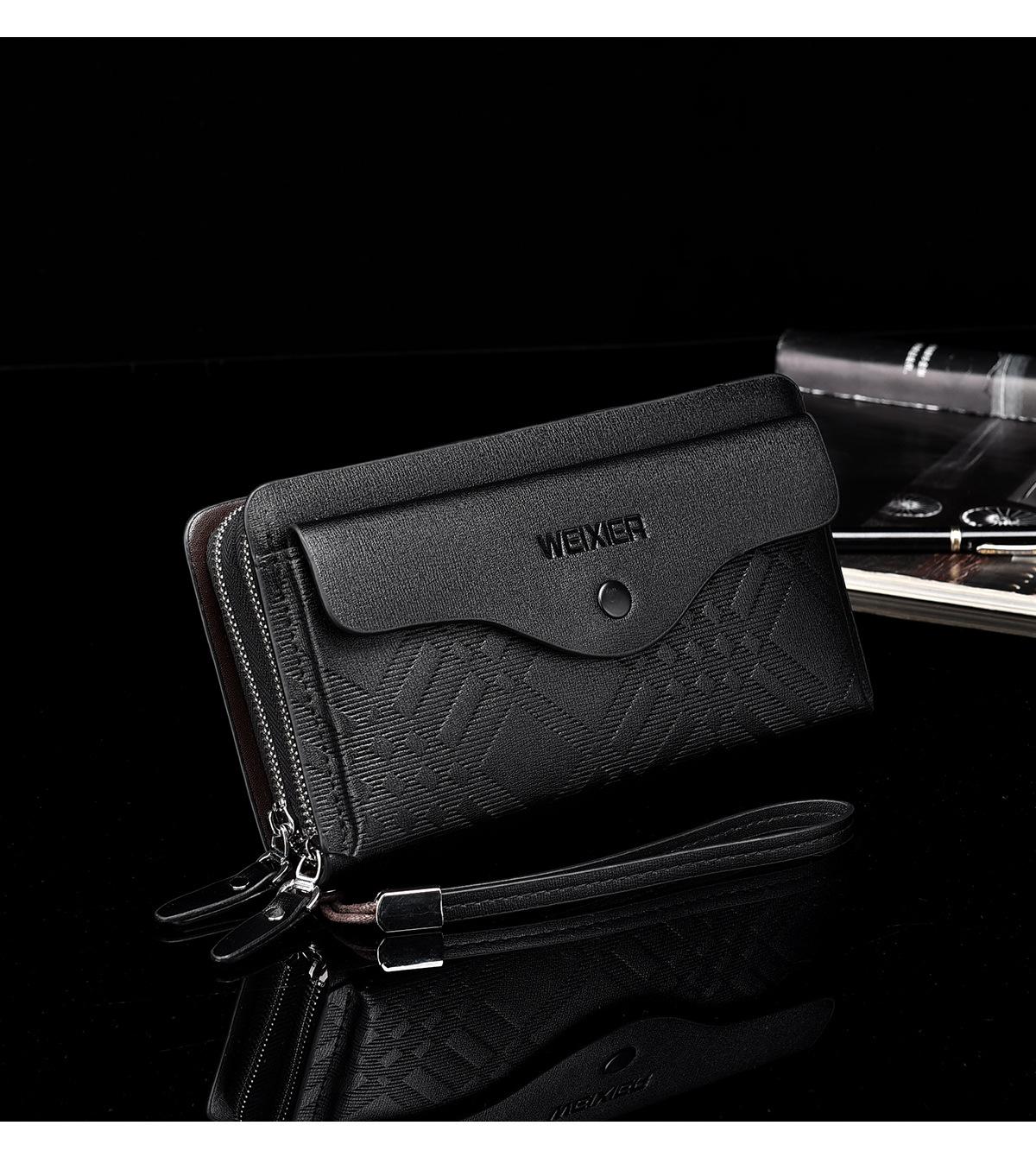 Cartera larga casual para hombre, clutch portátil de negocios, PU, gran capacidad, doble cremallera, tarjetero múltiple