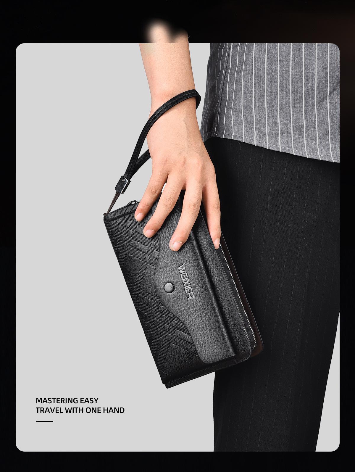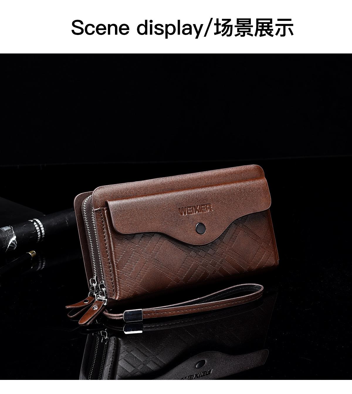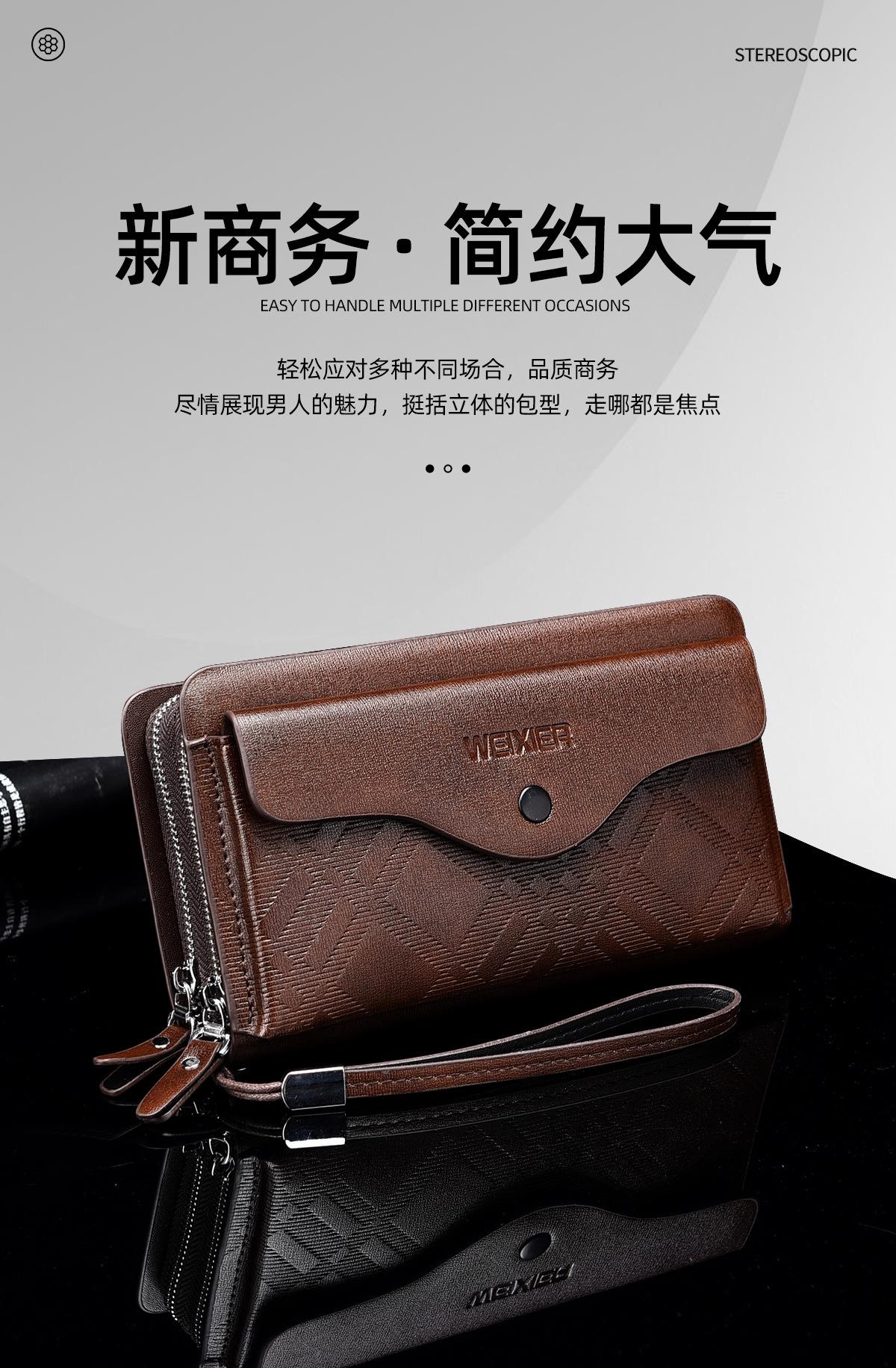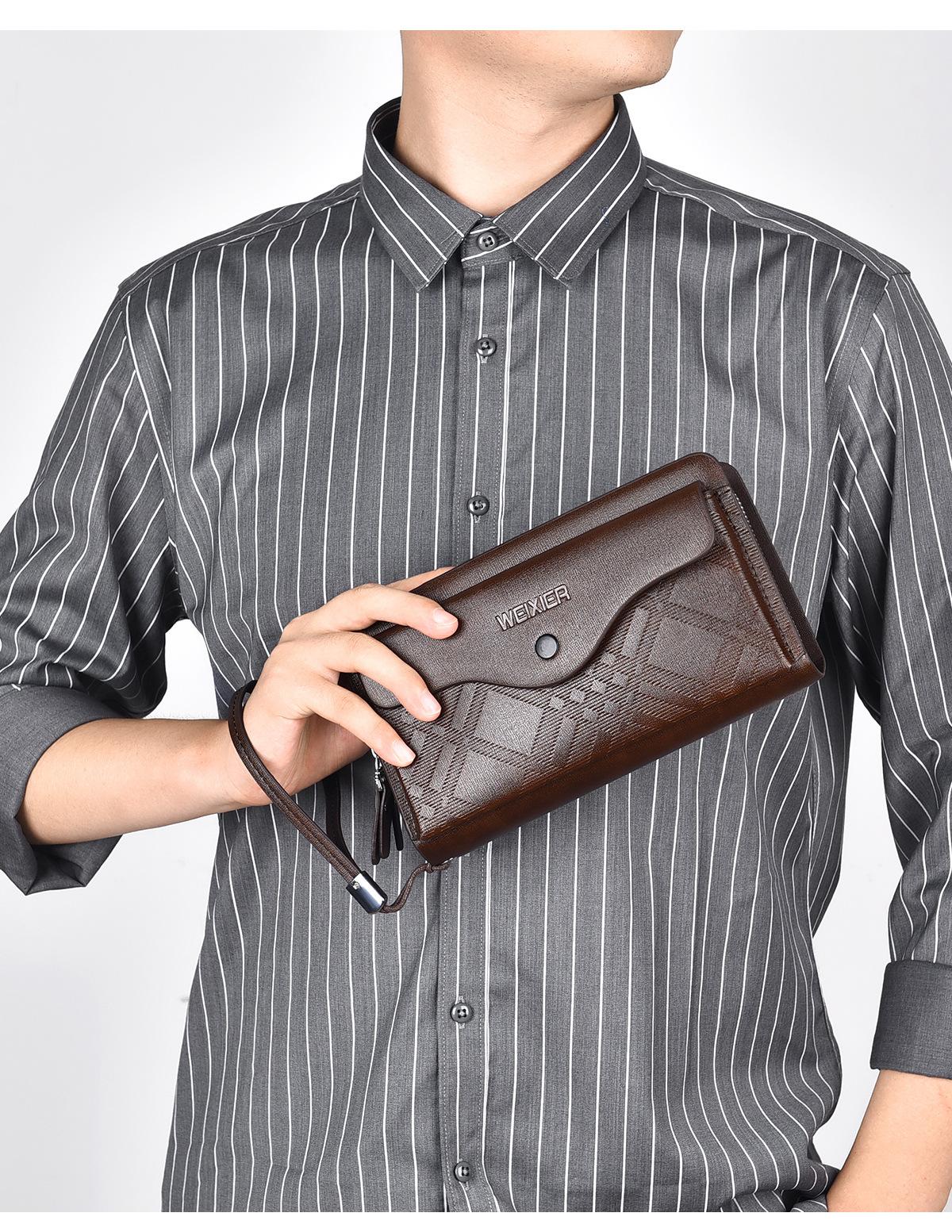 Cartera larga casual para hombre, clutch portátil de negocios, PU, gran capacidad, doble cremallera, tarjetero múltiple