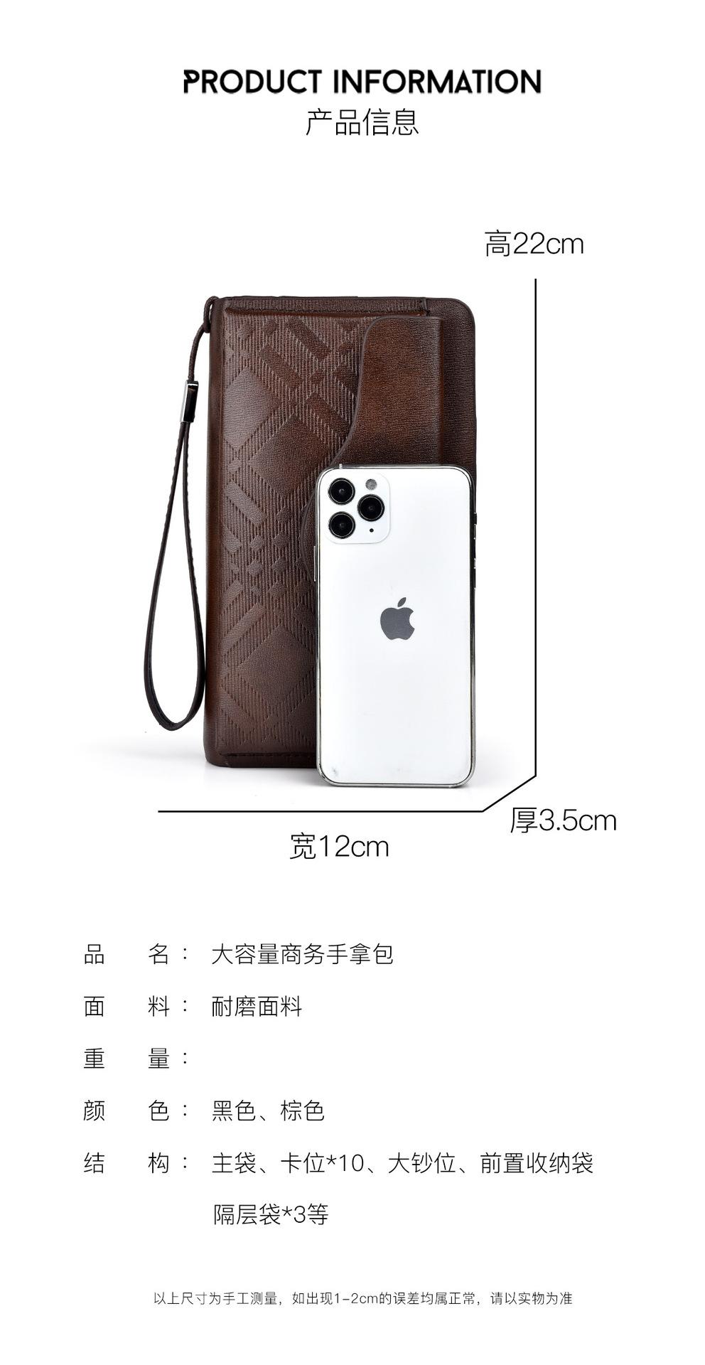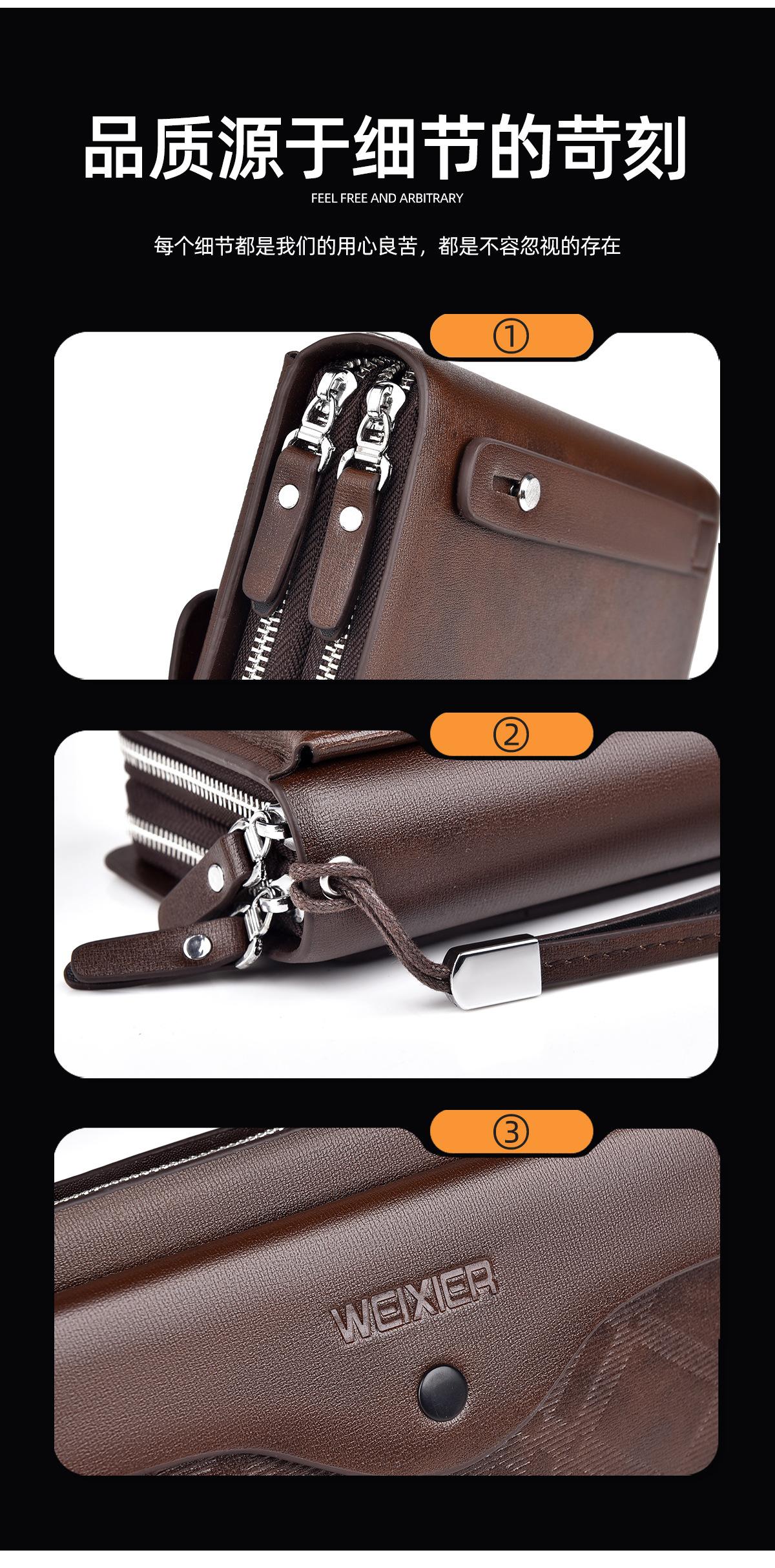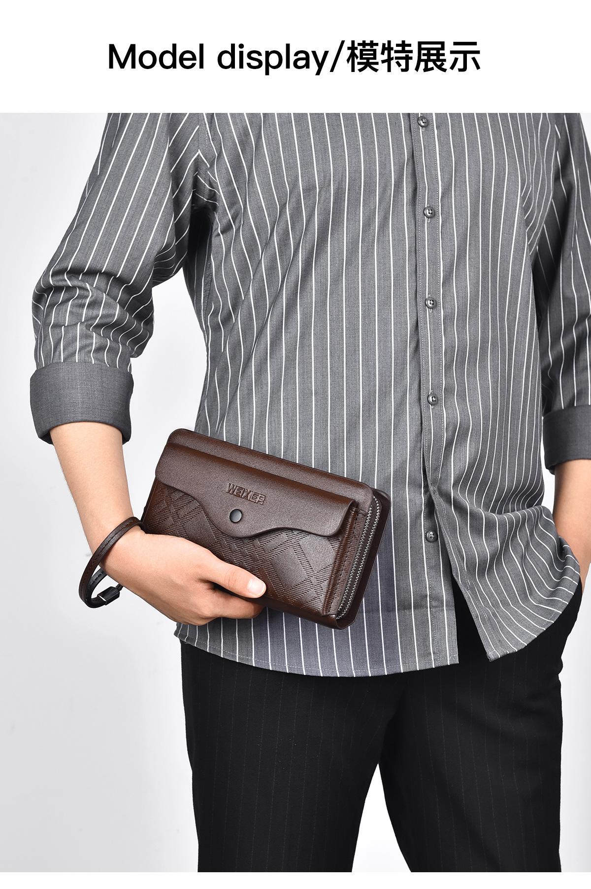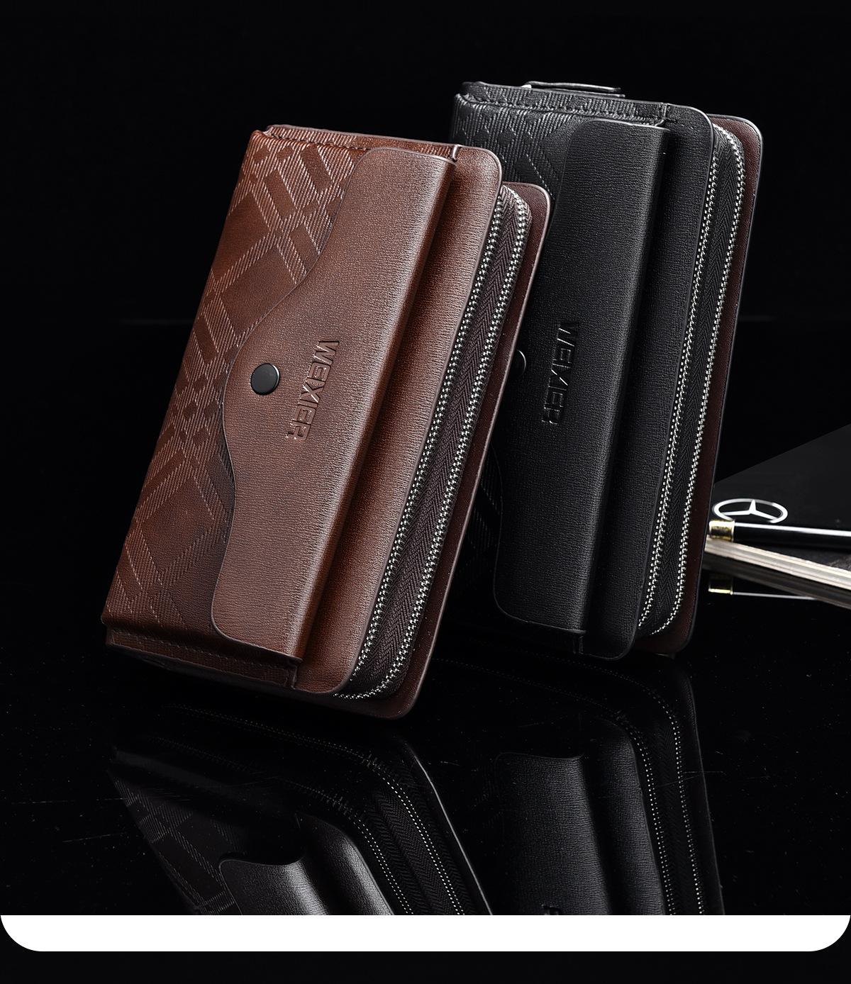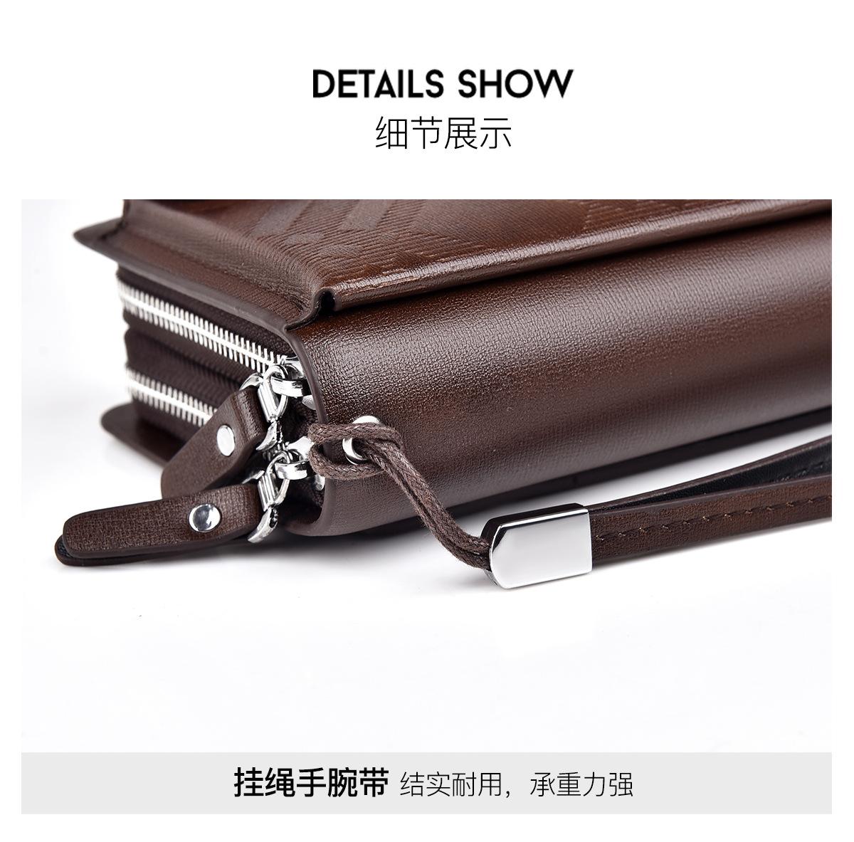 Cartera larga casual para hombre, clutch portátil de negocios, PU, gran capacidad, doble cremallera, tarjetero múltiple
