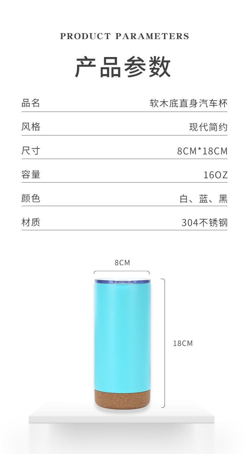 Taza de acero inoxidable 304 transfronteriza, taza con asa inferior de corcho, taza de agua de 16 oz y 12 oz, taza para automóvil, venta al por mayor