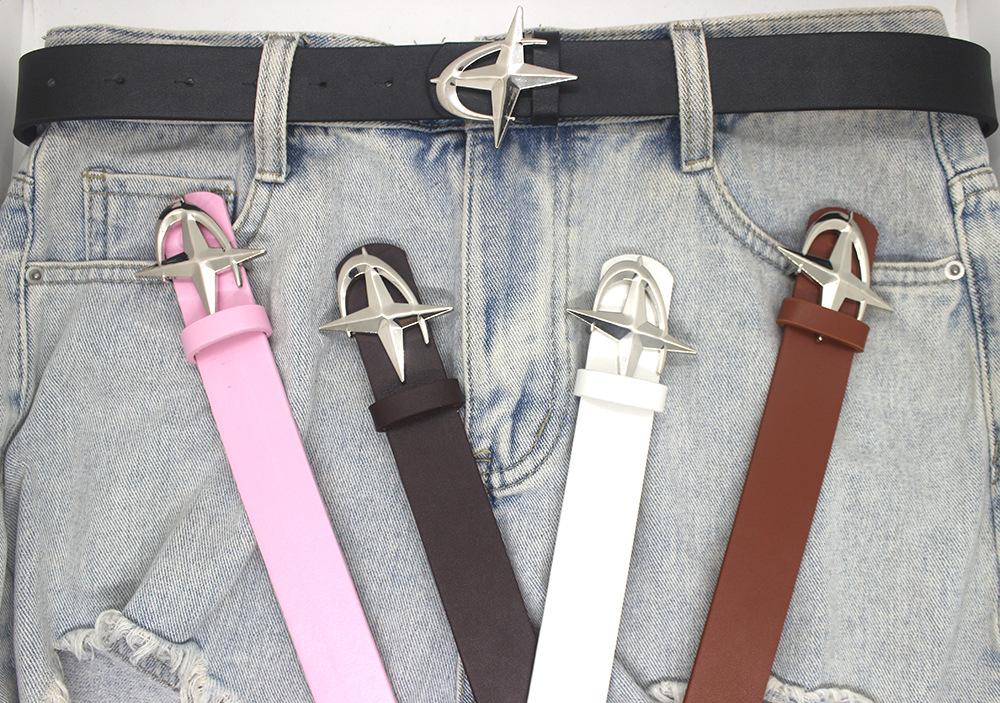 Cinturón de Hebilla Cruz Estrella de Nueva Llegada a la Moda Jeans Falda Moda Todo Combinable Accesorios Personalizados Cinturón Nicho