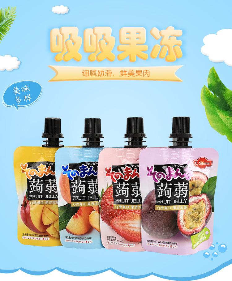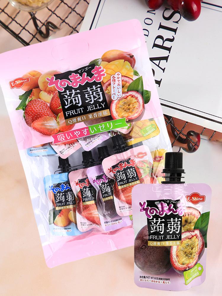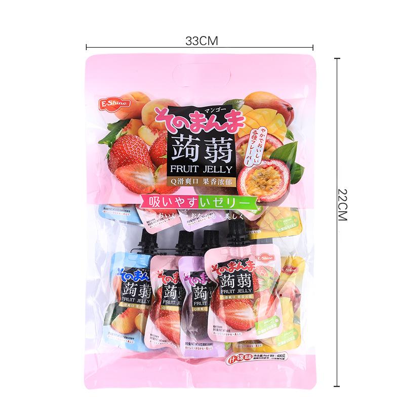 Nombre del producto: Pudín chupable de konjac Yisha sabor a frutas surtidas para celebridades de Internet, empaquetado individualmente, snack para niños, jalea chupable 600g/bolsa, 20 bolsas por caja